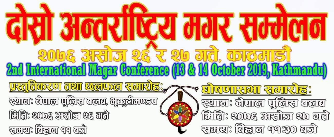 भृकुटीमण्डप स्थित पुलिस क्लवको सभाहलमा हुने सम्मेलनको औपचारिक उद्घाटन असोज २७ गते उपराष्ट्रपति नन्दबहादुर पुन ‘पासाङ’ले गर्नेछन् । सम्मेलनमा भारत, भुटान, बर्मा, थाईल्याण्ड, अमेरिका, बेलायत, बेल्जियम, जापान, कोरिया, मलेसिया, हंगकंग, क्यानडा, कतार, साउदी अरब, युएई, बहराइन, ओमन, कुवैत, मकाउ, सिंगापुर, अस्ट्रेलिया, अस्ट्रिया, प्रोचुगल, स्पेन गरेर २७ का करिब पाँच सयजना प्रतिनिधि सहभागी हुने मगर संघले जनाएको छ ।