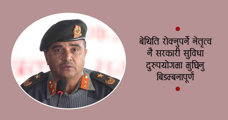 राष्ट्रिय सुरक्षा परिषदको विहिवार दिउंसो बसेको वैठकमा नेपाली सेनाका प्रधानसेनापति पूर्णचन्द्र थापाले दुवै संगठनको अवस्थाको विषयलाई लिएर गम्भिर प्रश्न उठाउनुको पछाडी पक्कै सामान्य घटनाले मात्रै काम गरेको छैन् भन्ने बुझिन्छ । दुवै संगठनका नेतृत्वका कारण सरकारलाई नै अफ्ठेरो परिरहेको र त्यसले देशको समग्र सुरक्षा व्यवस्थालाई नै कमजोर पारिरहेको गुनासो अहिले सर्वत्र छ ।