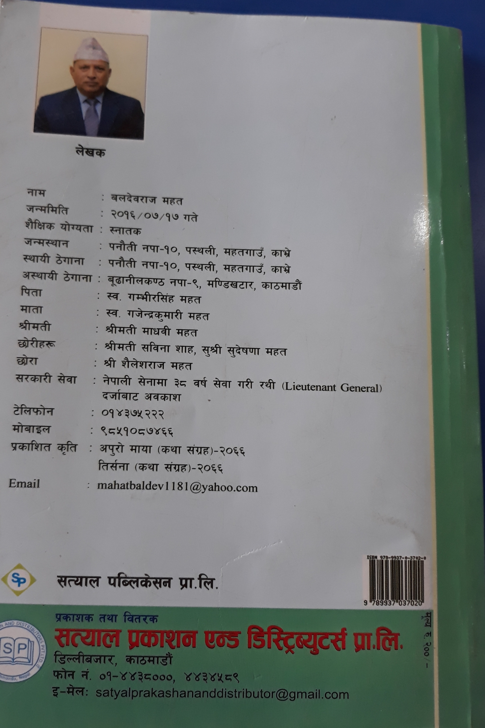 झण्डै चार दशकको सैन्य पेशाबाट निबृत्त भइ ´बन्दुकसँग औपचारिक पारपाचुके` गरेका बलदेवराज महतका लागि अब को ´रिटायर्ड` जीवन परिस्कृत लेखक बन्नकालागी पक्कै पनि उपयोगी बन्न सक्छ !