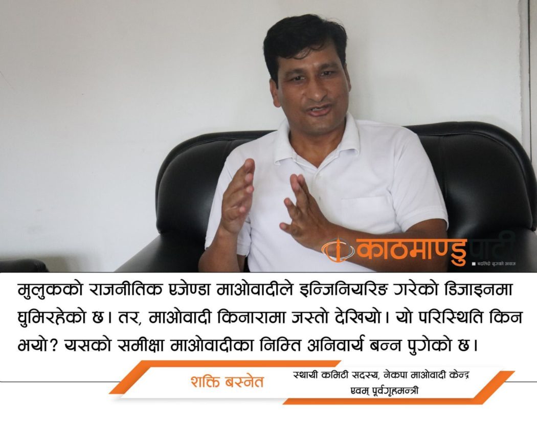 माओवादी केन्द्रका स्थायी समिति सदस्य शक्ति बहादुर बस्नेत माओवादीमा तुलनात्मक रुपमा स्वच्छ छवी भएका नेताका रुपमा चिनिन्छन् । जाजरकोटबाट दुई पटक चुनाव जितेका बस्नेत यसअघि स्वास्थ्य,वन तथा गृहजस्ता शक्तिशाली मन्त्रालयको मन्त्री समेत बने । बस्नेत युवा पुस्तामा माओवादीभित्र वैचारिक हिसावले समेत अव्वल मानिन्छन् । प्रस्तुत छ उनै बस्नेतसंग काठमाण्डुपाटीका लागि वसन्त खड्का र निशेष खनालले गरेकाे कुराकानीकाे सम्पादित अंश :
