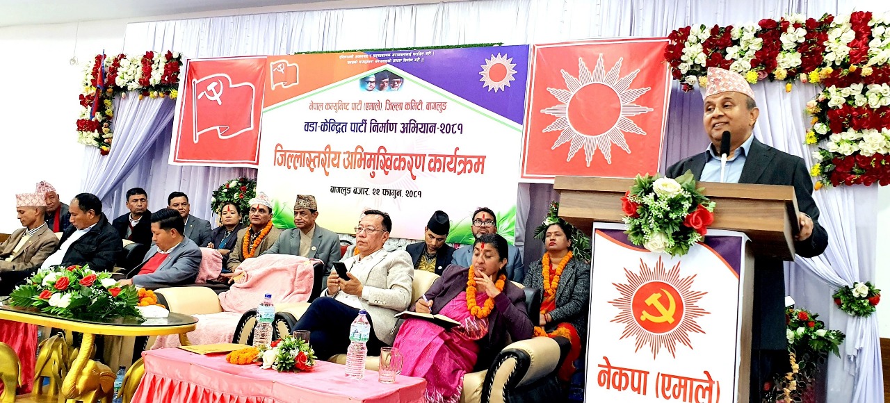 नेकपा एमाले बागलुङद्वारा आयोजित वडा केन्द्रित अभियानको अभिमुखीकरण कार्यक्रमलाई बिहीबार सम्बोधन गर्दै महासचिव पोखरेलले कांग्रेस र एमाले मिल्नुको उद्देश्य राजनीतिक अस्थिरता अन्त्य गर्नको लागि भएको बताए ।