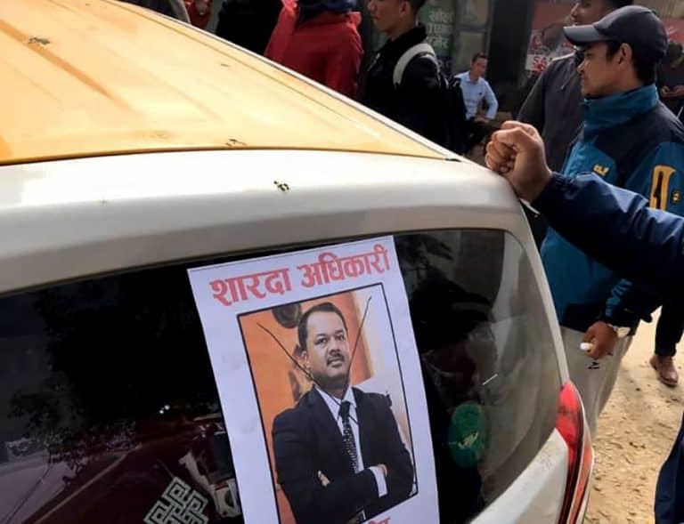 अधिकारी सैलुङ कन्स्ट्रक्सनका मालिक हुन् । पोलपोलका साथै त्यहाँ चल्ने सवारी साधनहरुमा पनि त्यस्ता फोटोहरु टाँगिएका छन् ।