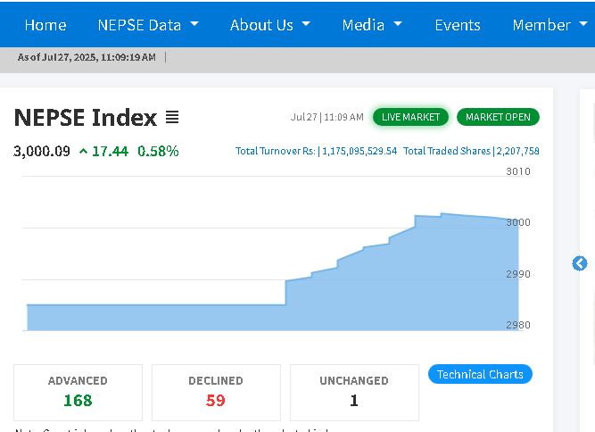 ३ हजार विन्दुमा पुग्यो सेयर बजार
