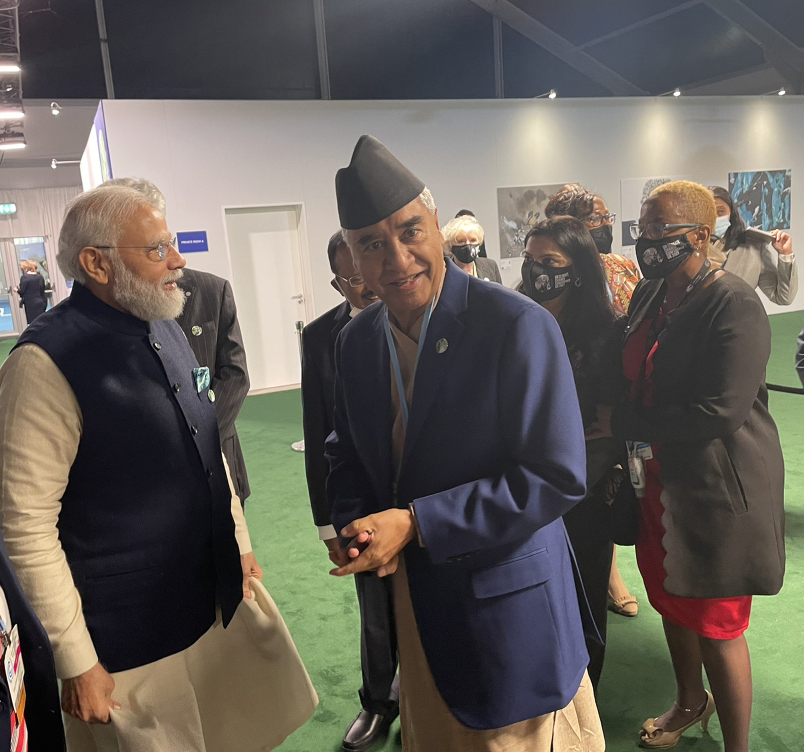 साथै उनले कार्यक्रमको दौरान भारतीय समकक्षी नरेन्द्र मोदी, बेलायती समकक्षी बोरिस जोन्सनलगायतसँग पनि भेटवार्ता गरेका थिए । उक्त पार्टीमा बेलायती राजपरिवारका सदस्यहरु पनि उपस्थित थिए ।