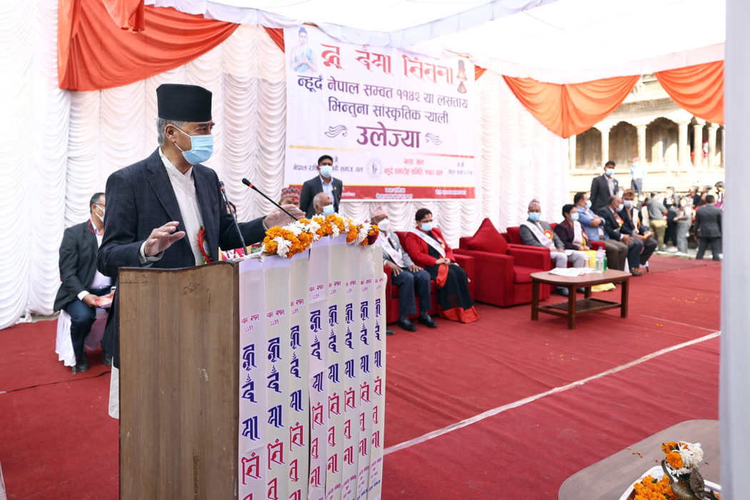 प्रधानमन्त्री देउवाले नेपालमा रहेका विविध धर्म संस्कृतिले राष्ट्रिय एकतालाई बलियो बनाउँदै नेपालीलाई एकताबद्ध हुन प्रेरणा प्रदान गर्ने बताए । कार्यक्रममा प्रधानमन्त्री देउवाले नेपाल संवत् एप र नेपाल संवत्को पात्रो सार्वजनिक गरेका थिए । सो अवसरमा उनले साख्वाःको शालिकमा माल्यार्पण गरेका थिए ।