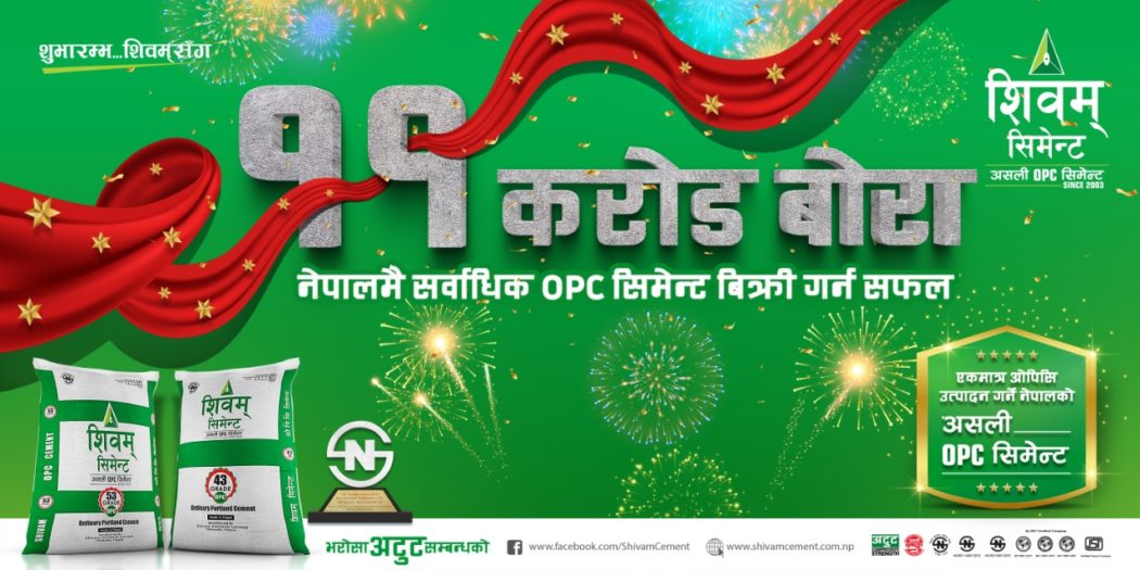 काठमाण्डु -शिवम् सिमेन्ट्स लिमिटेडले ११ करोड बोरा सिमेन्ट विक्रि गर्दै नेपाल भरी सर्वाधिक बिक्री हुने ओ.पि.सि सिमेन्ट बन्न सफल भएको छ । शिवम् सिमेन्टले स्थापना काल देखि हाल ०७९ असार मसान्तसम्मको छोटो अवधिमा नै नेपालकै सर्वाधिक ओ.पि.सि. सिमेन्ट विक्रि गर्ने उद्योग बन्न सफल भएको हो ।
