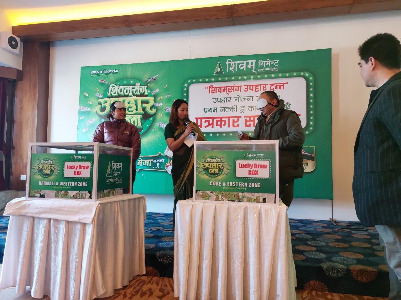 शिवम् सिमेन्टद्वारा “शिवम्सँग उपहार टन्न” उपहार योजनाको मासिक लक्की ड्र अन्तर्गत पहिलो महिनाको भाग्यशाली (उपभोक्ता तर्फ ३० जना र विक्रेता तर्फ ४० जना) विजेताहरुको नाम लक्की–ड्र मार्फत पत्रकार सम्मेलन गरि सार्वजनिक गरिएको हाे ।