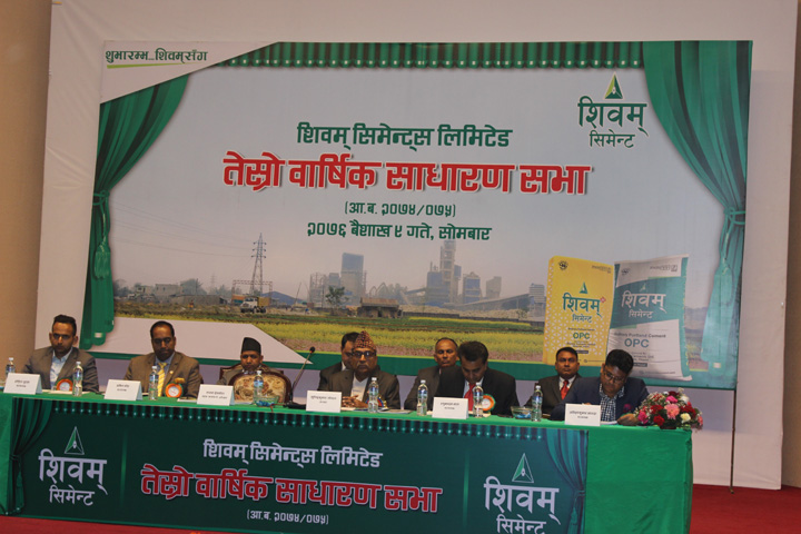 काठमाडौं – शिवम् सिमेन्ट्स लिमिटेडको तेस्रो वािर्षक साधारणसभा सोमबार सम्पन्न भएको छ । कम्पनीका अध्यक्ष सुरेन्द्र कुमार गोयलको अध्यक्षतमा सम्पन्न साधारणसभाले विभिन्न निर्णय गरेको छ ।