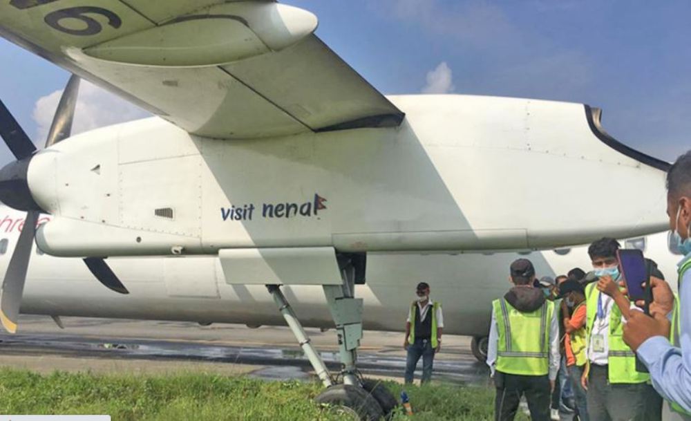 त्रिभुवन विमानस्थलमा श्री एयरलाइन्सको विमान चिप्लियो