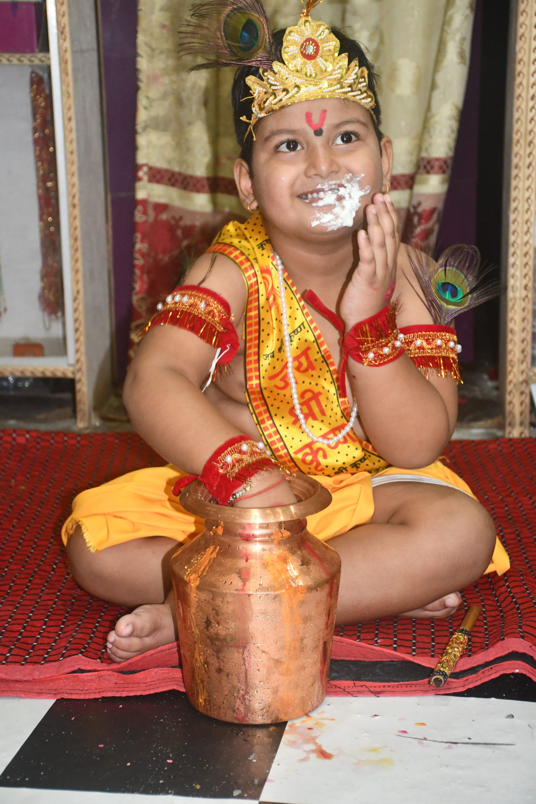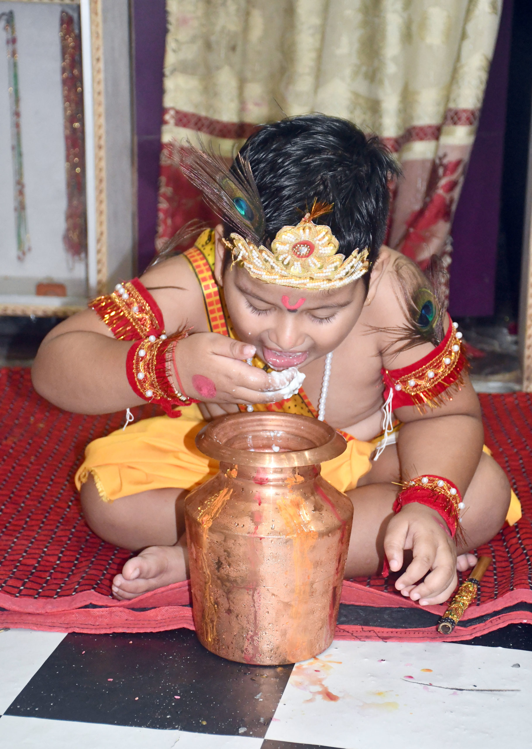 धनगढी – श्रीकृष्ण जन्माष्टमी पर्वका अवसरमा मङ्गलबार कैलालीको घोडाघाोडी–१ सुखड्मा भगवान् कृष्णकोे पोसाकमा सजिएर मख्खन खाँदै एक बालक ।