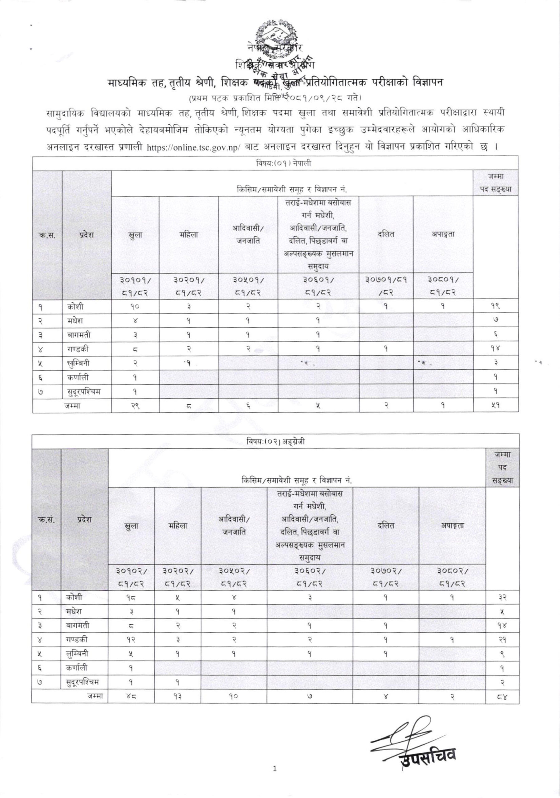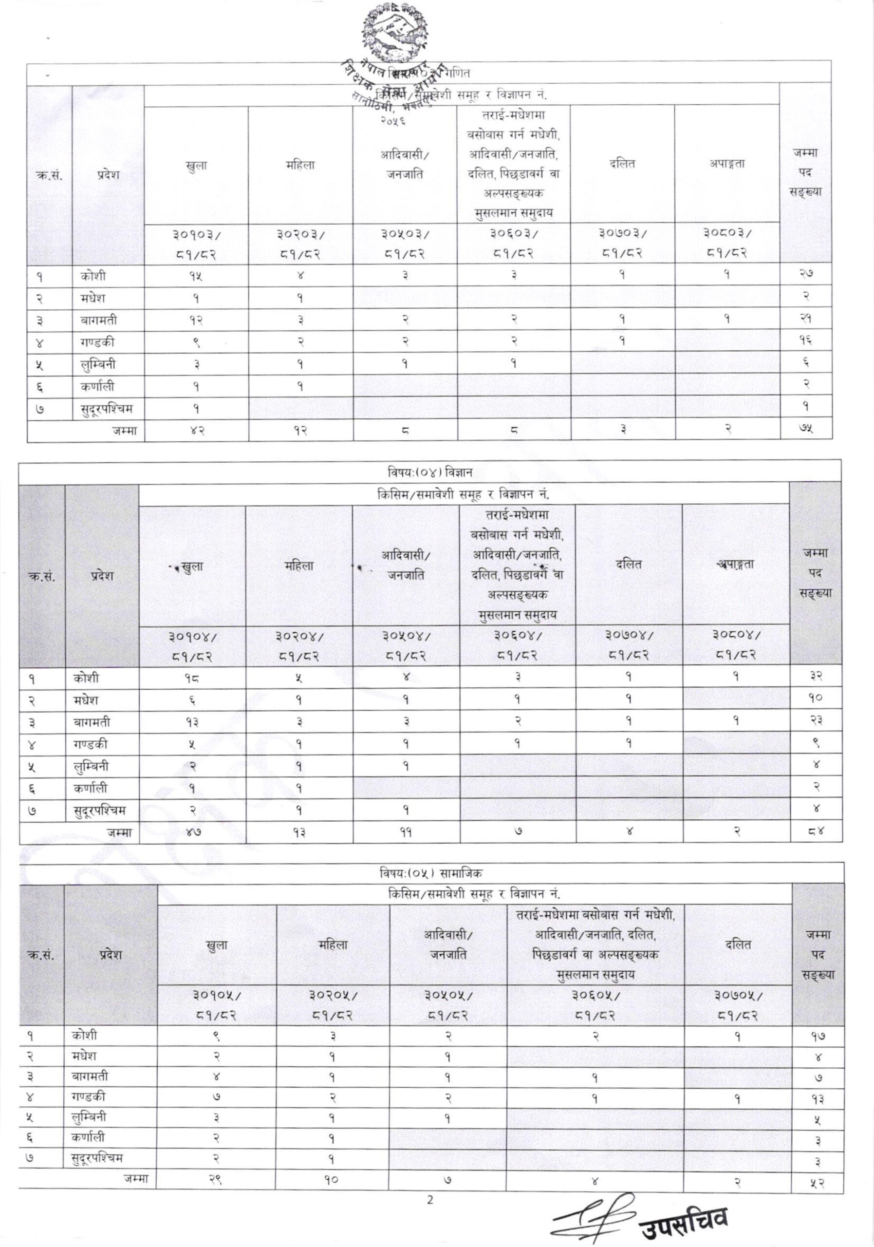 माध्यमिक तहका लागि शिक्षक माग (सूचनासहित)