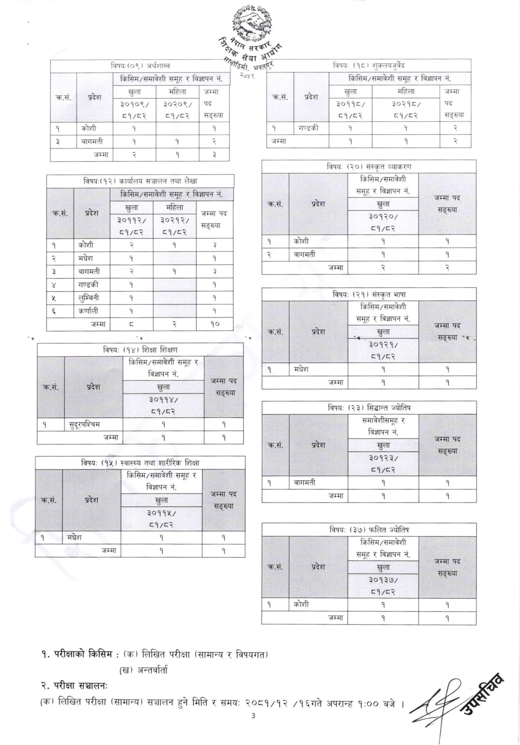 आयोगले आइतबार सूचना जारी गर्दै ३६८ जना शिक्षकको लागि दरखास्त आह्वान गरेको हो । एक महिने म्याद राखेर विभिन्न विषयको माध्यमिक तह, तृतिय श्रेणीका शिक्षक पदका लागि खुला प्रतियोगितात्मक परीक्षाको लागि दरखास्त खुला गरिएको आयोगले जनाएको छ ।