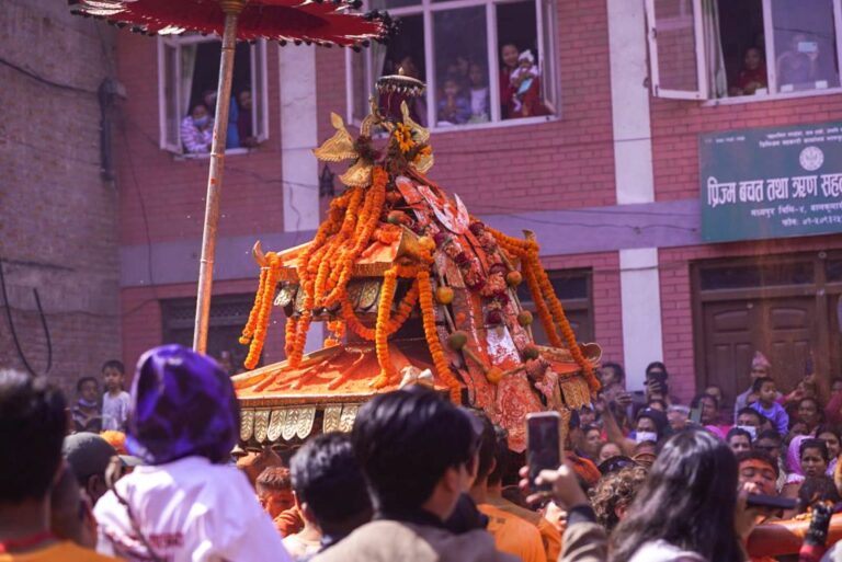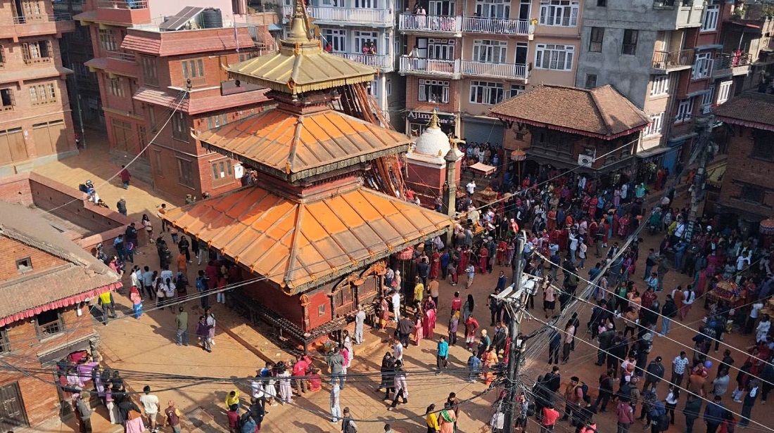 काठमाण्डु- मानिसको भीड, भीडमा सबैको टाउको, अनुहार, शरीर सबै फुस्रो अबिरैअबिरले राताम्मे । अगाडि हातहातमा धपक्क बलेको चिरागका समूह, त्यसपछि धिमे र मुस्या बाजा बजाउने अर्को समूह, त्यसपछि आ–आफ्नो टोलका देवीदेवतालाई विराजमान गराइएका खट बोकेर टोलटोल घुम्दै बालबालिका, युवायुवतीदेखि ज्येष्ठ नागरिकसमेत बिहानै जात्राको भीडमा सिन्दूर खेल्दै रमाउँदै भव्य रूपमा मध्यपुरथिमिका बासिन्दाले सुथसिया अर्थात् बिहानीको जात्रा मनाएका छन् ।