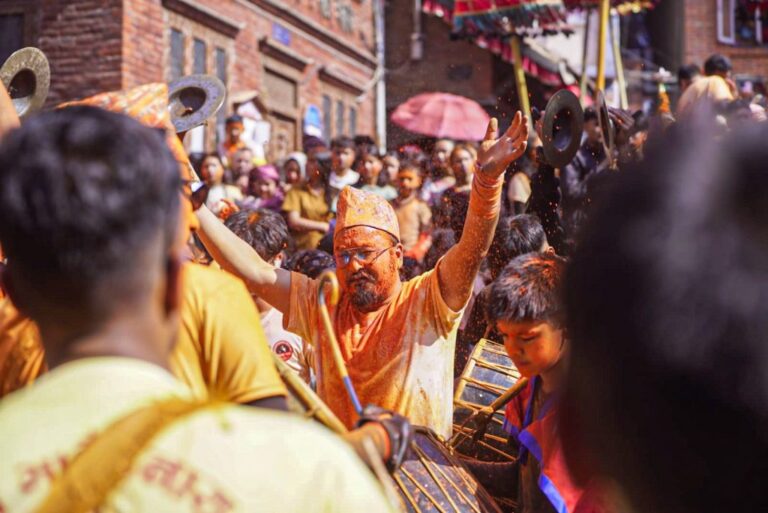 यसमा थिमिको बालकुमारी, दक्षिणवाराही, विष्णुवीर, सिद्धिकाली, नगदेशको सिद्धिगणेश, बोडेको महालक्ष्मी र टिगनीको नीलवाराही मन्दिरका देवताका नेतृत्वमा खट बोकेर जात्रा गरी टोलटोलमा सिन्दुर खेल्दै मनाइन्छ ।