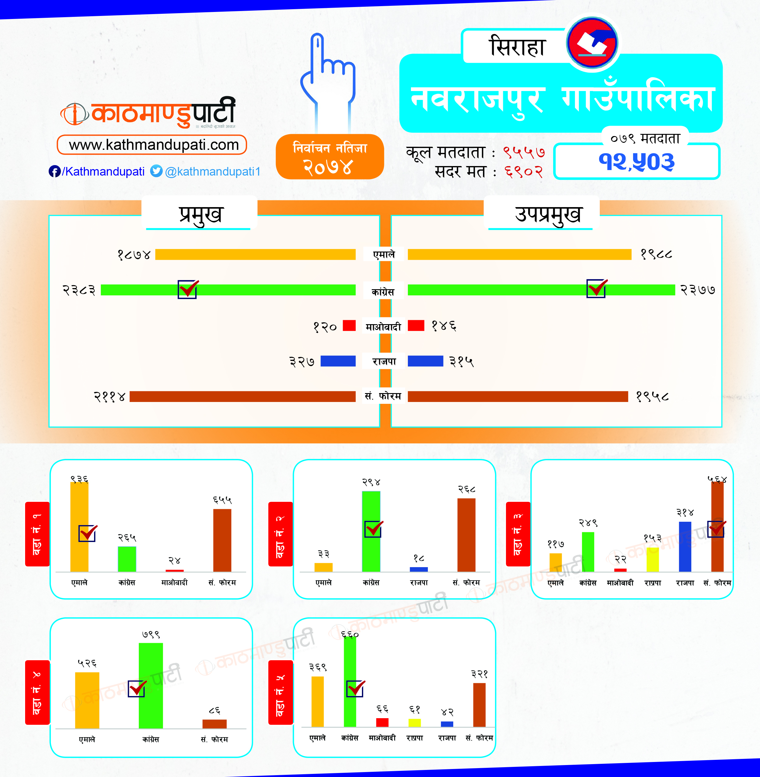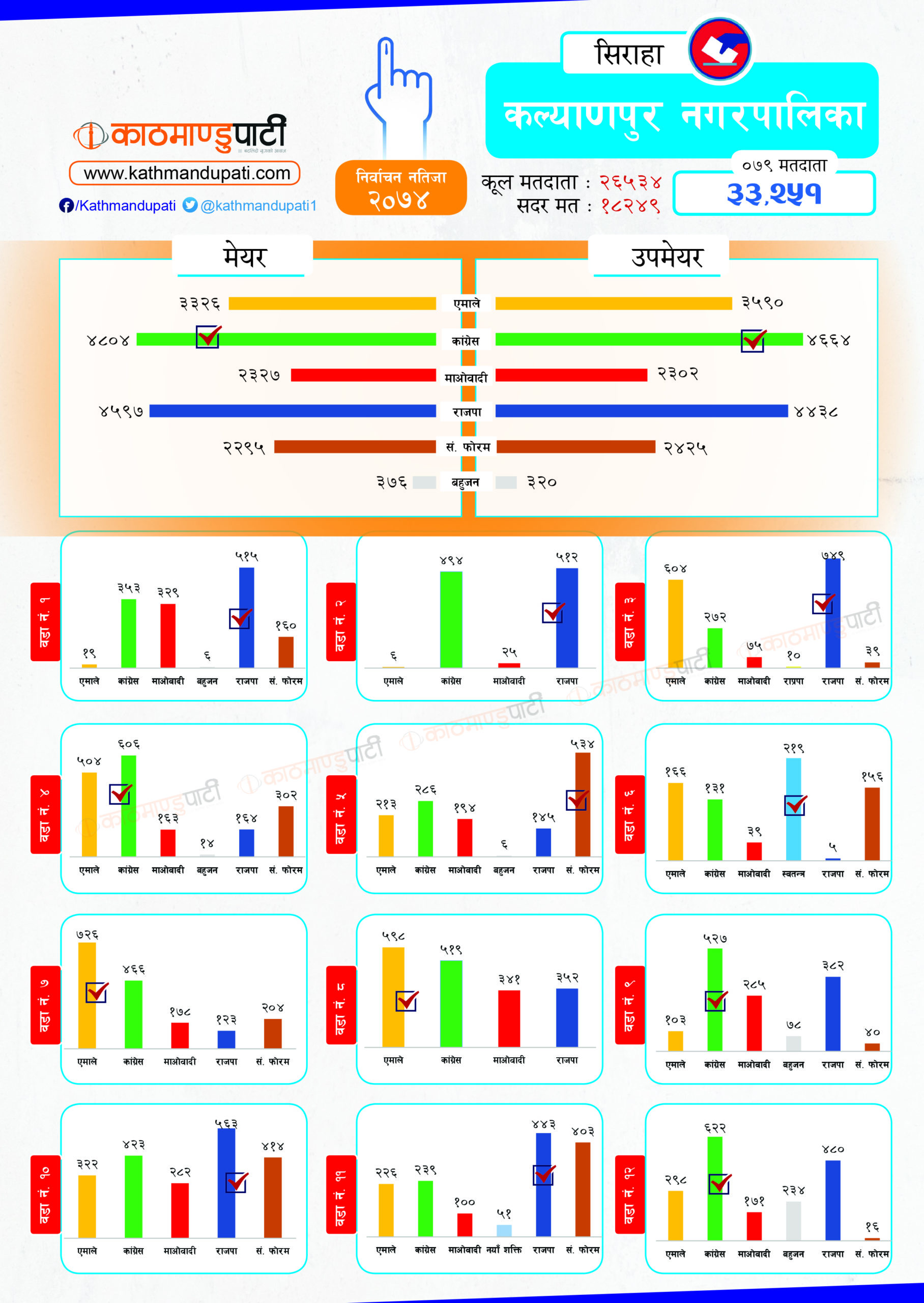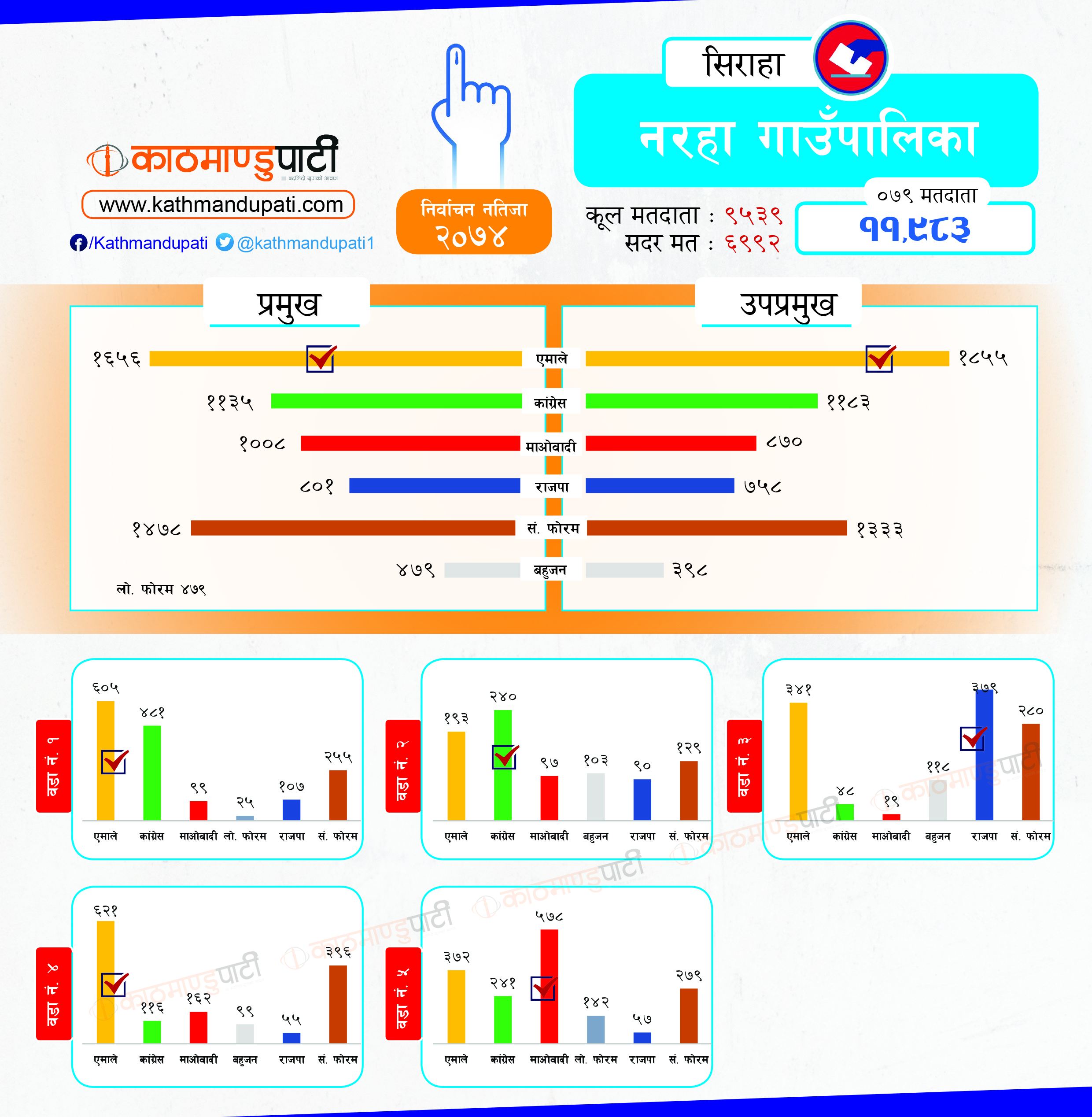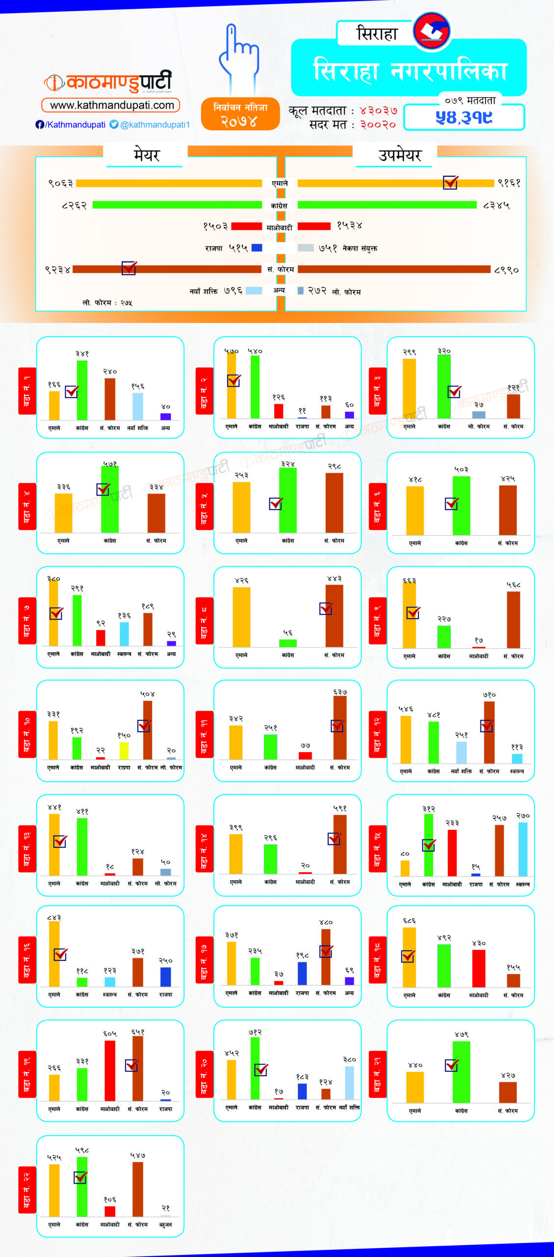 संघीय फोरमले बरियारपट्टी, भगवानपुर, लक्ष्मीपुर–पतारी र विष्णुपुर गाउँपालिकाको अध्यक्ष–उपाध्यक्ष तथा सदरमुकामसमेत रहेको सिराहा नगरपालिकाको मेयरका साथै औरही गाउँपालिकाको उपाध्यक्ष जितेको थियो । एमालेले लहान र सुखीपुर नगरपालिकाको मेयर–उपमेयर, सिराहा नगरपालिकाको उपमेयर तथा सखुवानान्कारकट्टी र नरहा गाउँपालिकाको अध्यक्ष–उपाध्यक्ष जितेको थियो ।