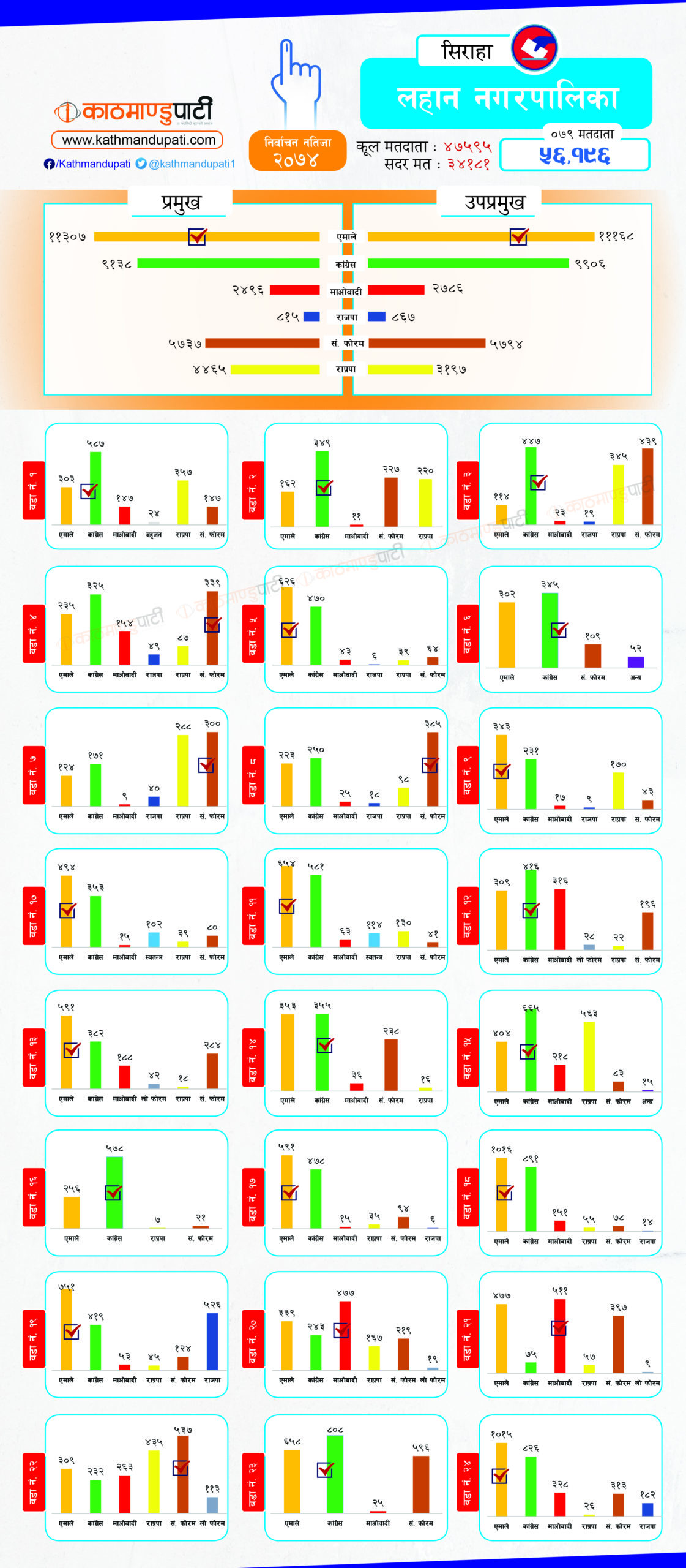समग्रमा जिल्लामा माओवादीलाई विगतको परिणाम दोहो¥याउने चुनौती छ । आन्तरिक विवादले उसलाई समस्या छ । जसपा र कांग्रेसले पुरानै नतिजा दोहोर्याउन सक्छन् । तर, जसपामा पनि आन्तरिक कलह सानो छैन । एमालेलाई कतिपय पालिकामा गठबन्धनको डर छ । लहान गुमाए पनि अन्यत्र एमाले फाइदामा जान सक्छ । जिल्लामा आगामी चुनावका लागि ४ लाख १४ हजार १ सय ६६ मतदाता छन् । तीमध्ये २ लाख १९ हजार ५ सय ६४ पुरुष र १ लाख ९४ हजार ६ सय महिला छन् ।