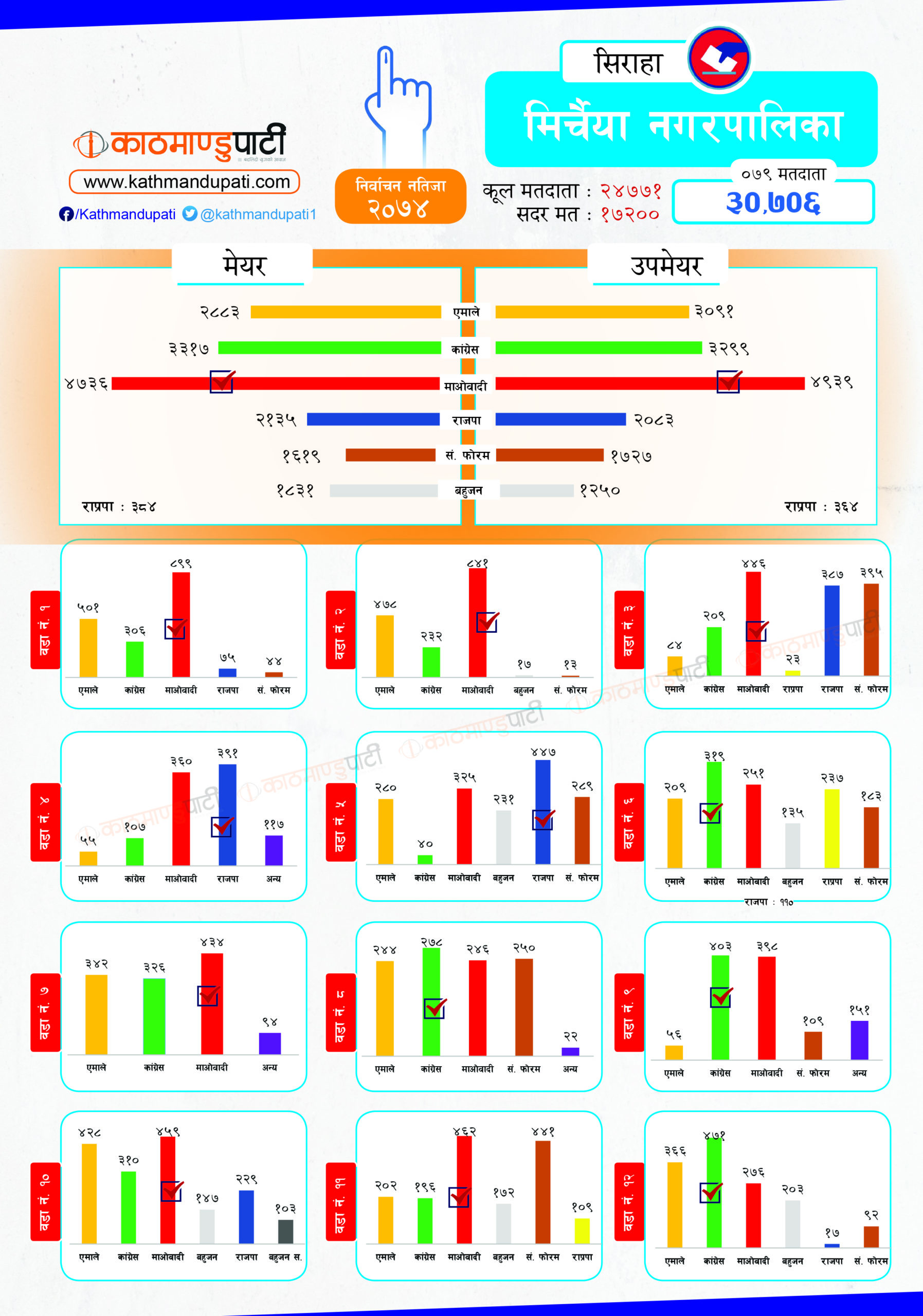 मिर्चैयामा माओवादी र विष्णुपुरमा जसपा बलियो छ । सदरमुकाम सिराहामा जसपा, एमाले र कांग्रेसबीच प्रतिस्पर्धा छ । सुखीपुरमा अघिल्लोपटक संघीय फोरम र माओवादी मिल्दा पनि एमालेले जितेको थियो । यसपटक पनि ऊ नै बलियो छ ।