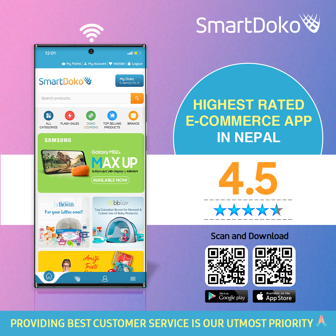 ‘सर्वप्रथम, छोटो समयको दौरानमा स्मार्ट डोकोलाई नेपालमा सबैभन्दा उच्च मूल्याङ्कन गरिएको ई–कमर्शका रुपमा स्थापित गर्न निरन्तर माया र साथ प्रदान गर्नुभएकोमा हामी हाम्रा ग्राहकहरु तथा शुभ चिन्तकहरुलाई धन्यवाद ज्ञापन गर्न चाहन्छौं,’ आई.एम.एस. ग्रुपका अध्यक्षतथा सि.ई.ओ. दिकेश मलहोत्राले भने ।
