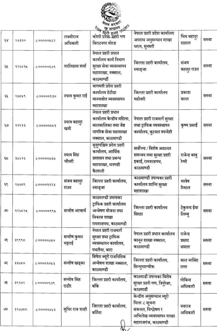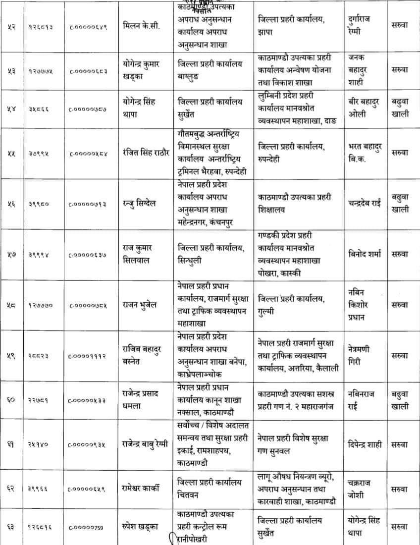 काठमाण्डु – नेपाल प्रहरीले ७८ जना प्रहरी उपरीक्षक (एसपी) को सरुवा गरेको छ।
