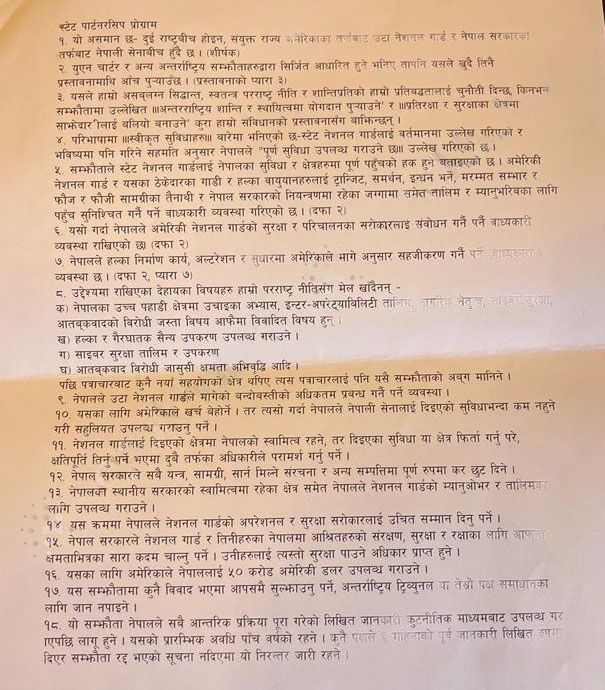 एसपीपीलाई दुईपक्षीय सम्झौताकै रुपमा अघि बढाएर नेपाललाई इण्डो प्यासिफिक सैनिक रणनीति (आईपीएस) को अंग बनाउने प्रयासलाई ओली नेतृत्वको सरकारले रोक लगाएको भेटिएको हो ।