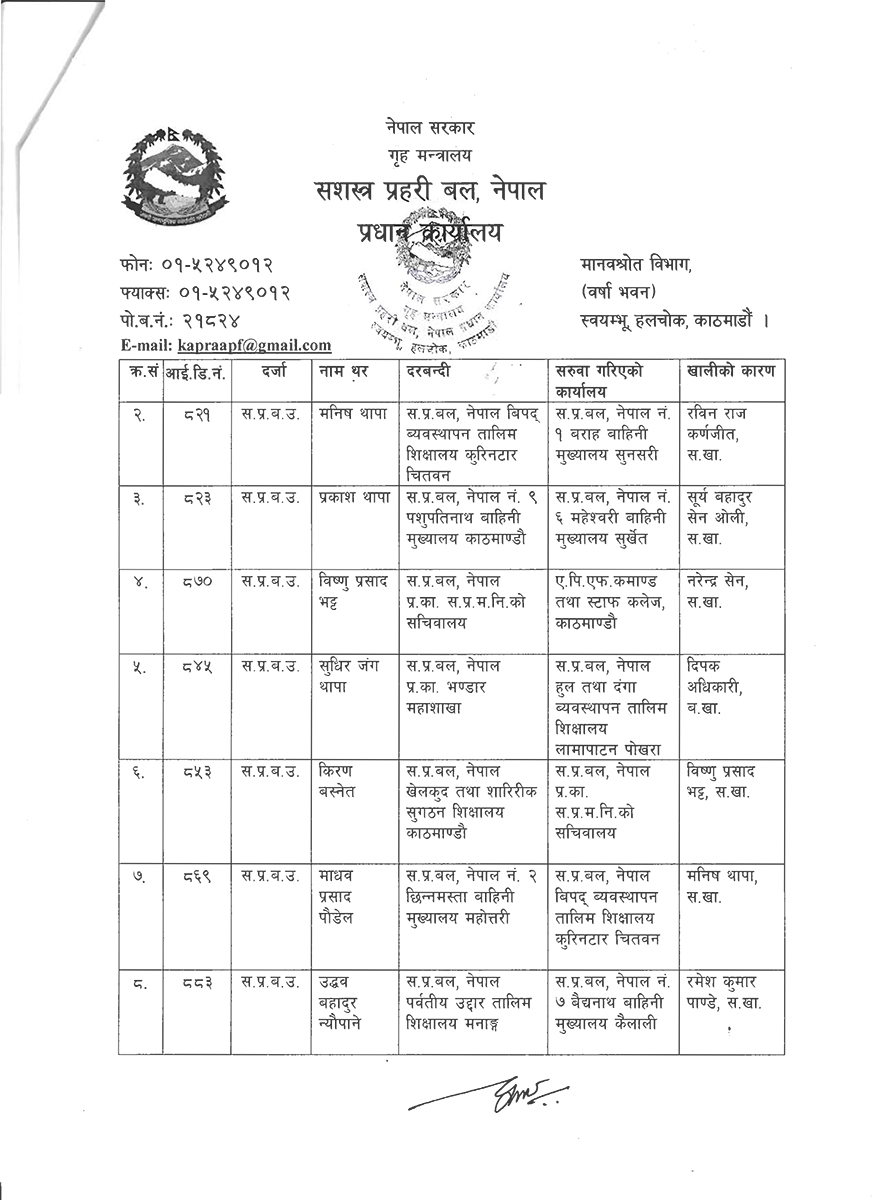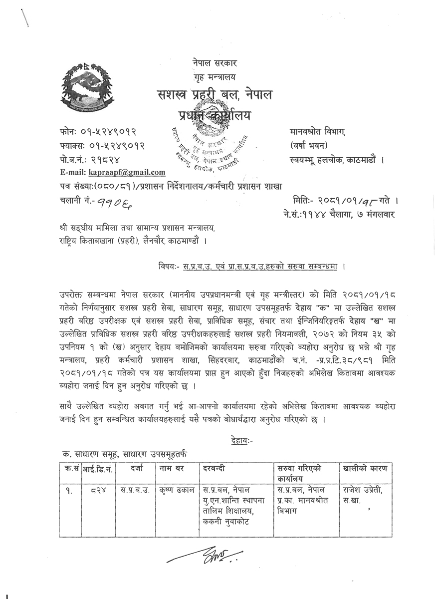 सरुवाको निर्णयसँगै विभाग र बाहिनीहरूका एसएसपी फेरिएका छन् ।