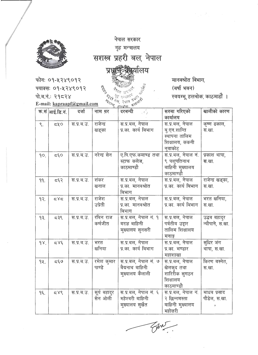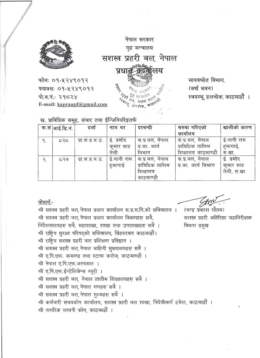 साधारण समूह तर्फका १६ जना र इन्जिनीयरिङ तर्फका २ जना एसएसपीको सरुवा गरिएको छ ।
