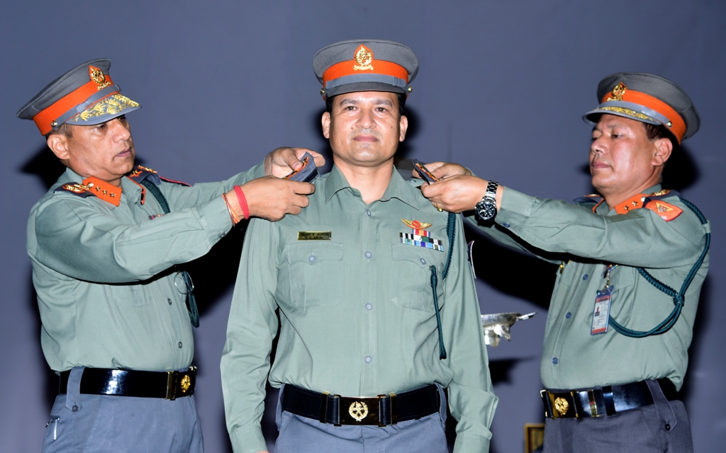 स्वयम्भूस्थित सशस्त्र प्रहरी बल मुख्यालयलमा आयोजित विशेष समारोहका बीच सशस्त्र प्रहरी महानिरीक्षक पुष्पराम केसीले ७ जनै अधिकृतहरुलाई दज्र्यानी चिन्ह लगाएका हुन् ।