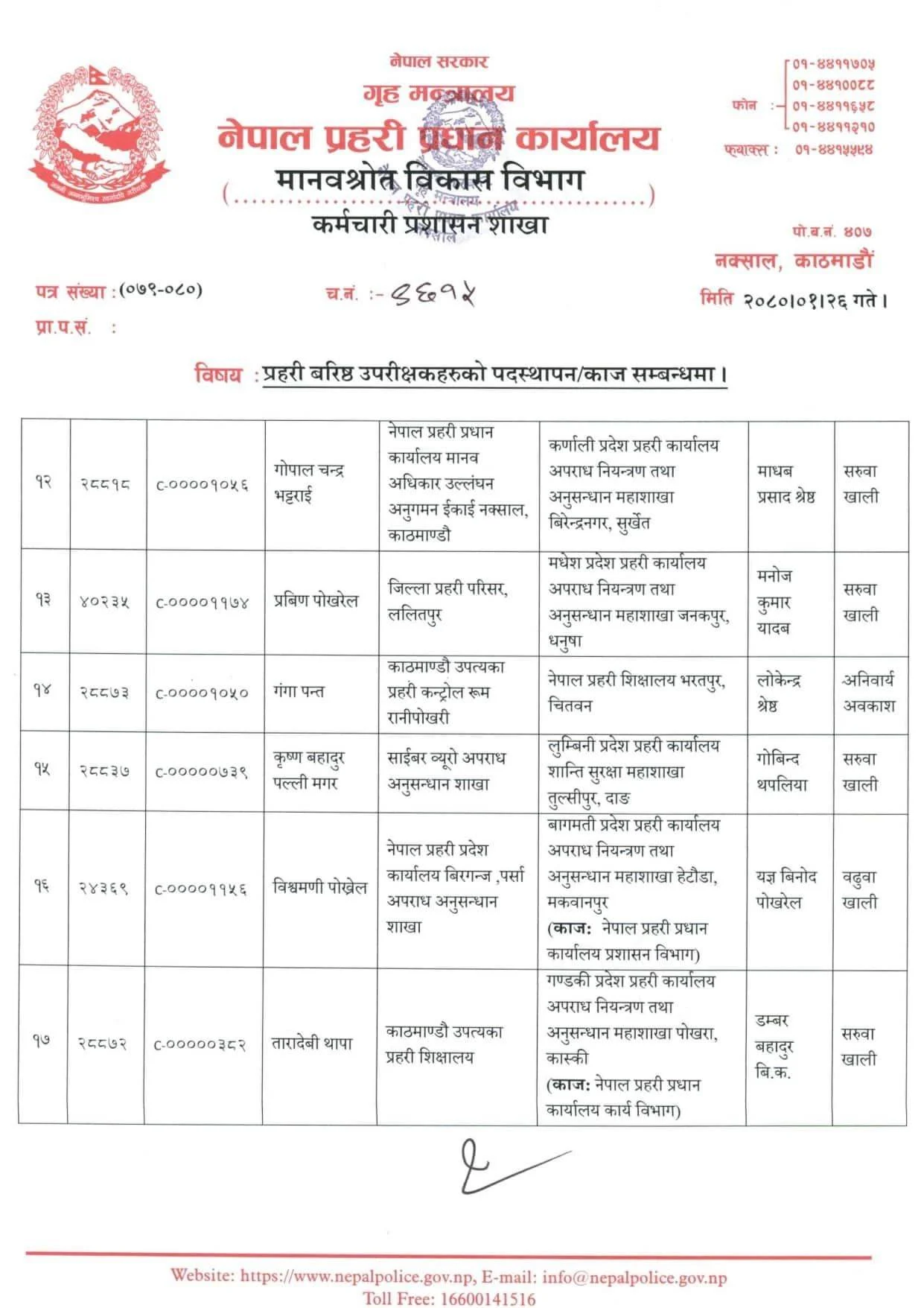 नेपाल प्रहरीका १८ एसएसपीको काज तथा पदस्थापन,को कहाँ पुगे ? (सूचीसहित)