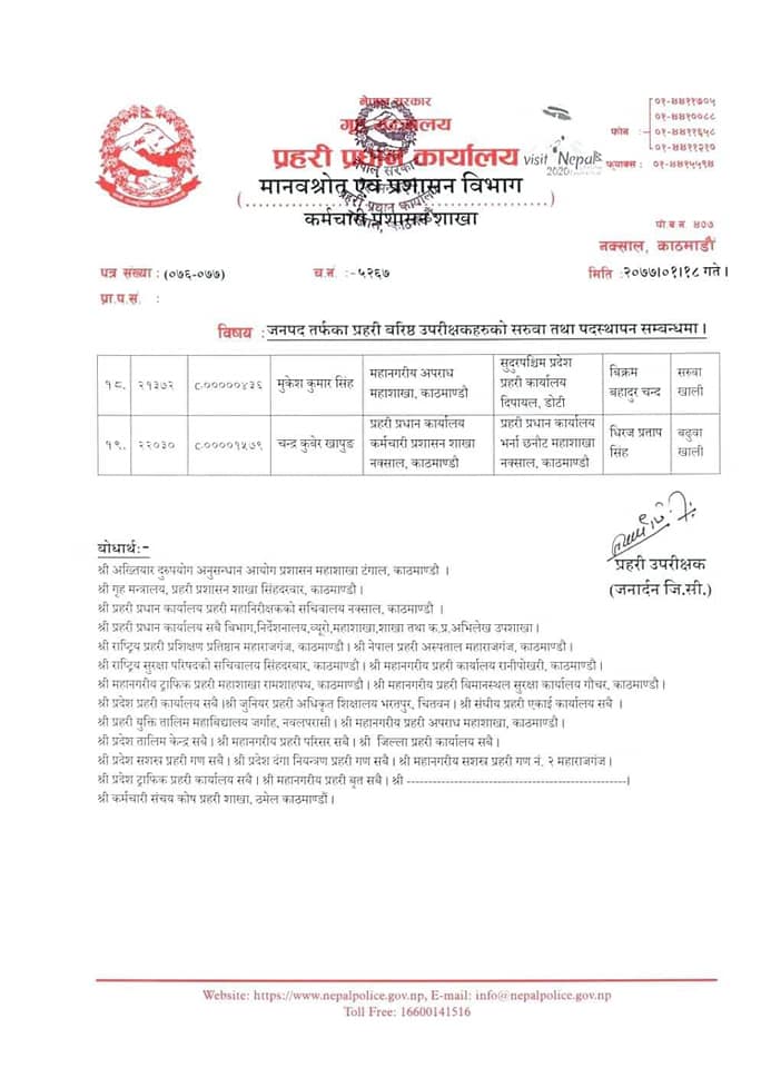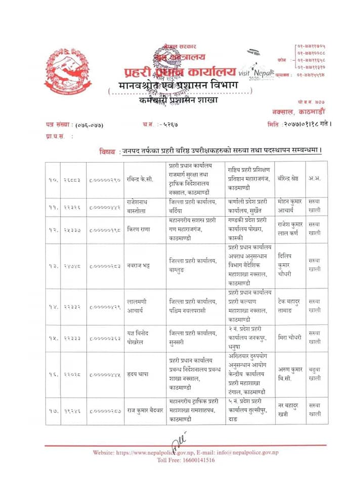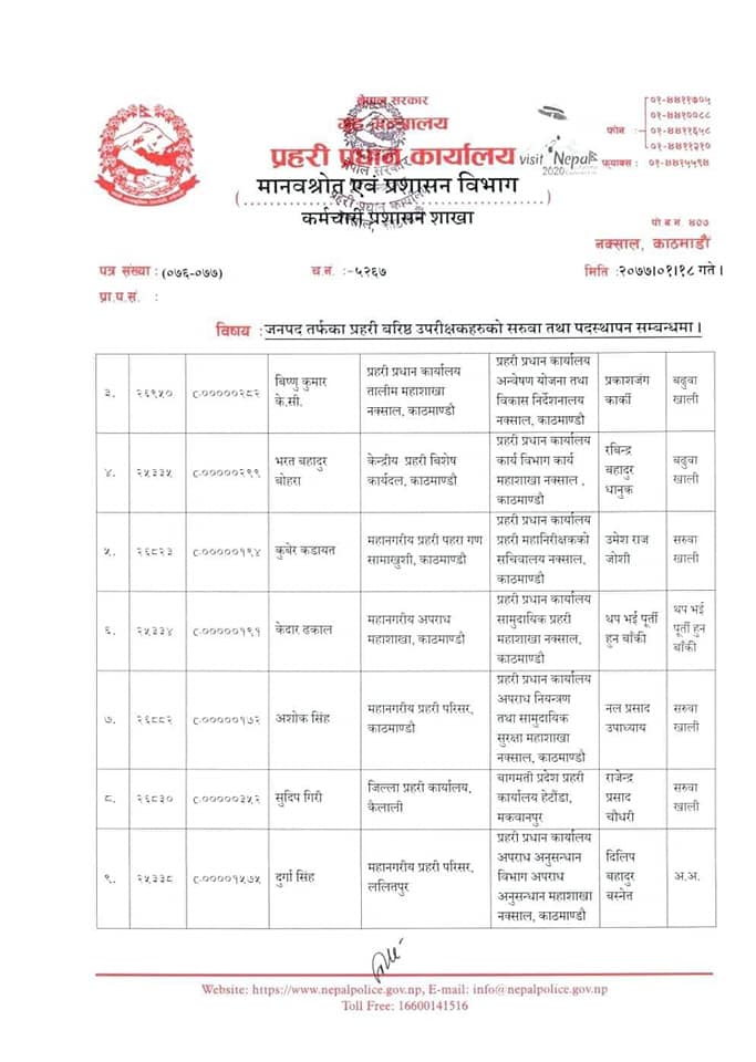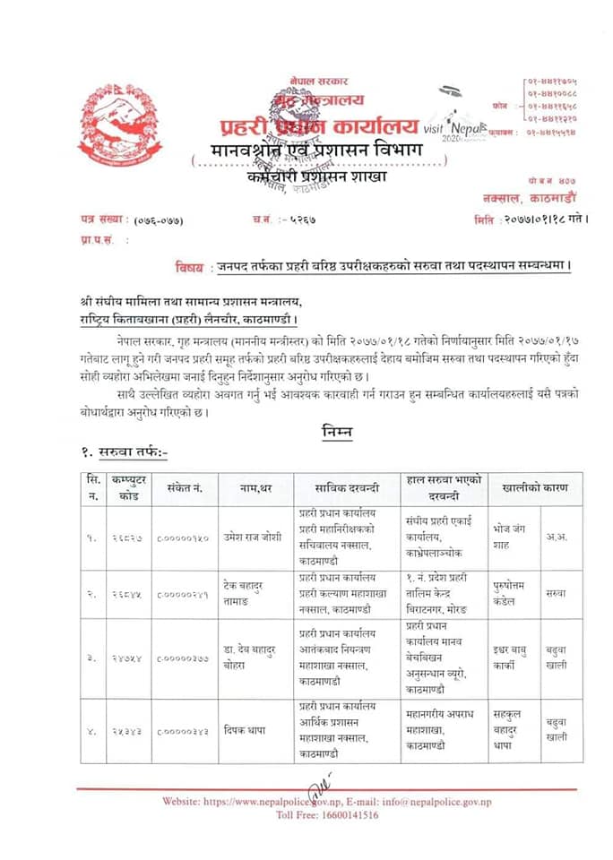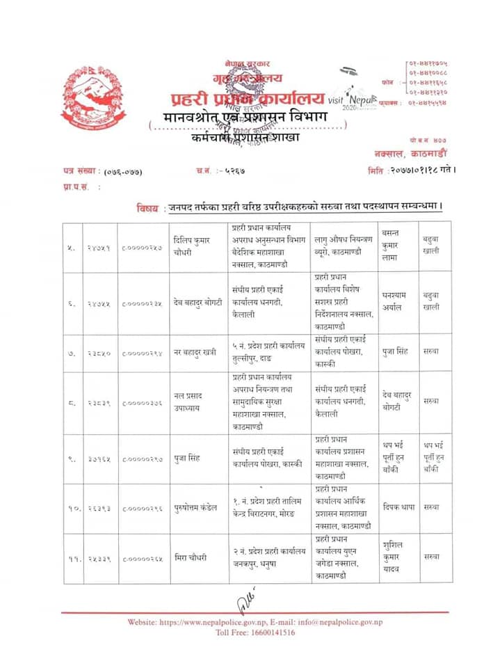 यस्तो छ पदस्थापनको सुची-