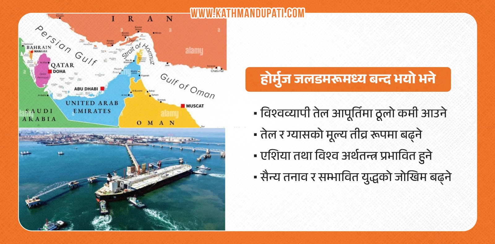 काठमाण्डु – विश्वको सबैभन्दा व्यस्त तेल ढुवानी मार्गमध्ये एक होर्मुज जलडमरूमध्य हाल चर्चाको केन्द्र बनेको छ ।