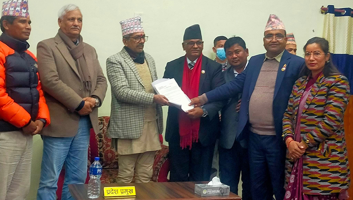 धनगढी – सुदूरपश्चिम प्रदेशको मुख्यमन्त्रीमा एमालेले दाबी पेश गरेको छ। बुधबार सुदूरपश्चिममा एमाले संसदीय दलका नेता राजेन्द्र रावलले मुख्यमन्त्री दाबी पेश गरेका छन्। उनले नेकपा माओवादी केन्द्र, नागरिक उन्मुक्ति पार्टी र राप्रपाको समर्थनमा प्रदेश प्रमुखसमक्ष दाबी पेस गरेका हुन्।