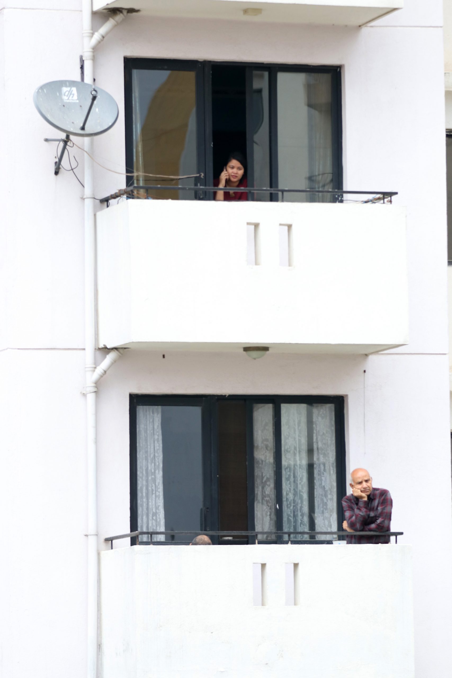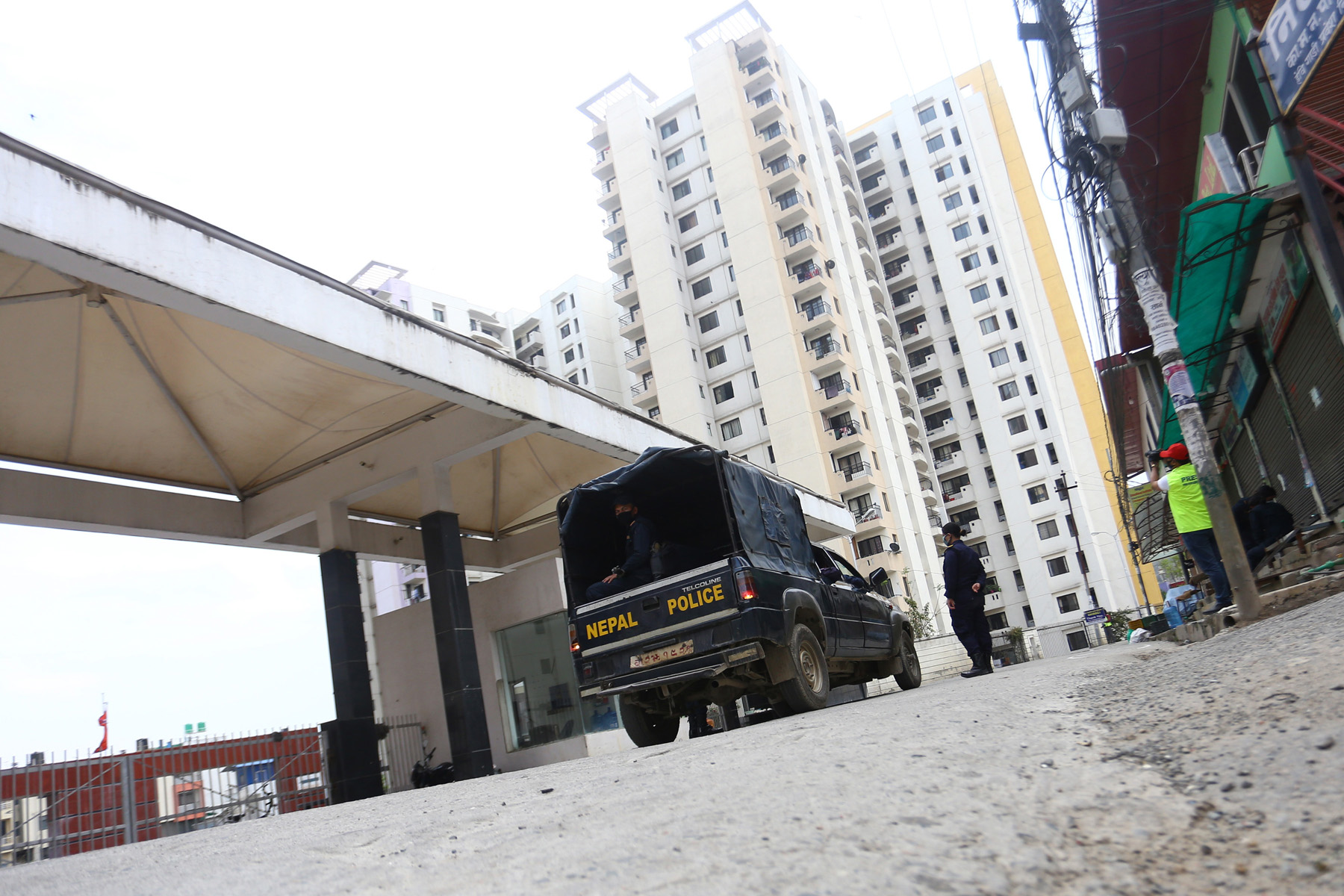 प्रहरीले अपार्टमेन्ट पूर्णरुपमा लकडाउन गररेको छ । मानिसहरु कौसीबाट बाहिर टालाउँदै नियालिरहेको देख्न सकिन्छ । त्यहाँ करिब १५ सय मानिस बस्ने गरेका छन् ।
