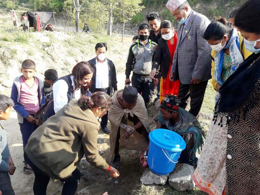 नगरपालिकाले राउटे समुदायमा साबुनपानीले हात धुन सिकाउन स्वास्थ्यकर्मी खटाएको छ । वर्षमा एकपटक मात्रै नुहाउने, खुला दिसा–पिसाब गर्ने, सरसफाइमा ध्यान नदिने राउटे समुदायमा सङ्क्रमणको जोखिम हुनसक्ने हुँदा सतर्कता अपनाइएको हो । “राउटे समुदाय सङ्क्रमित भएमा अन्य समुदायलाई तत्काल सर्न सक्ने खतरा छ, राउटेहरु खानेकुराको जोहो गर्न, आफूले बनाएका काठका भाँडा बिक्री गर्न गाउँ–शहर पस्ने गर्दछन्”, नगरप्रमुख चन्दले भने, “खाद्यान्नका लागि गाउँशहर डुल्नुपर्ने अवस्था अन्त्य गर्न नगरले सहयोग गर्दैछ, प्रदेश सरकारसँग पनि आग्रह गरेका छौँ ।” फिरन्ते जाति भएकाले राउटेहरु त्रिपालमुनि बस्छन् । शौचालय प्रयोग गर्दैनन् । अति लोपोन्मुख आदिवासीमा पर्ने यस समुदायको जनसङ्ख्या १५० मात्र छ ।