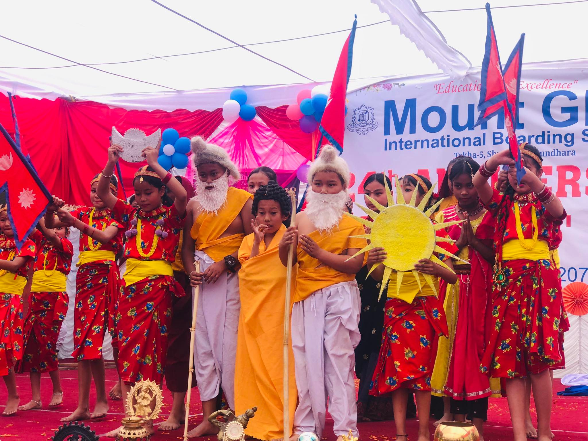 सो अवसरमा साना साना नानी बाबुहरुले चन्द्र सूर्य अंकित राष्ट्रिय झण्डा उठाउँदै देशभक्ती गीत गाउँदा अभिभावकहरु चाखपूर्ण स्टेजतिर हेरिरहेका थिए । जब कार्यक्रममा राष्ट्रिय भावनाले ओतप्रोत गीत गुञ्जियो तब अभिभावकको ताली बजिरहँदा स्टेजमा अभिनय गरिरहेका बालबालिकाहरुले चन्द्र र सूर्य बोकेर छाती फुलाइरहेका थिए । चन्द्र र सूर्य अंकित झण्डा बोक्दा उनीहरु गर्व महसुस गरेको बुझ्न सक्न्थ्यिो ।