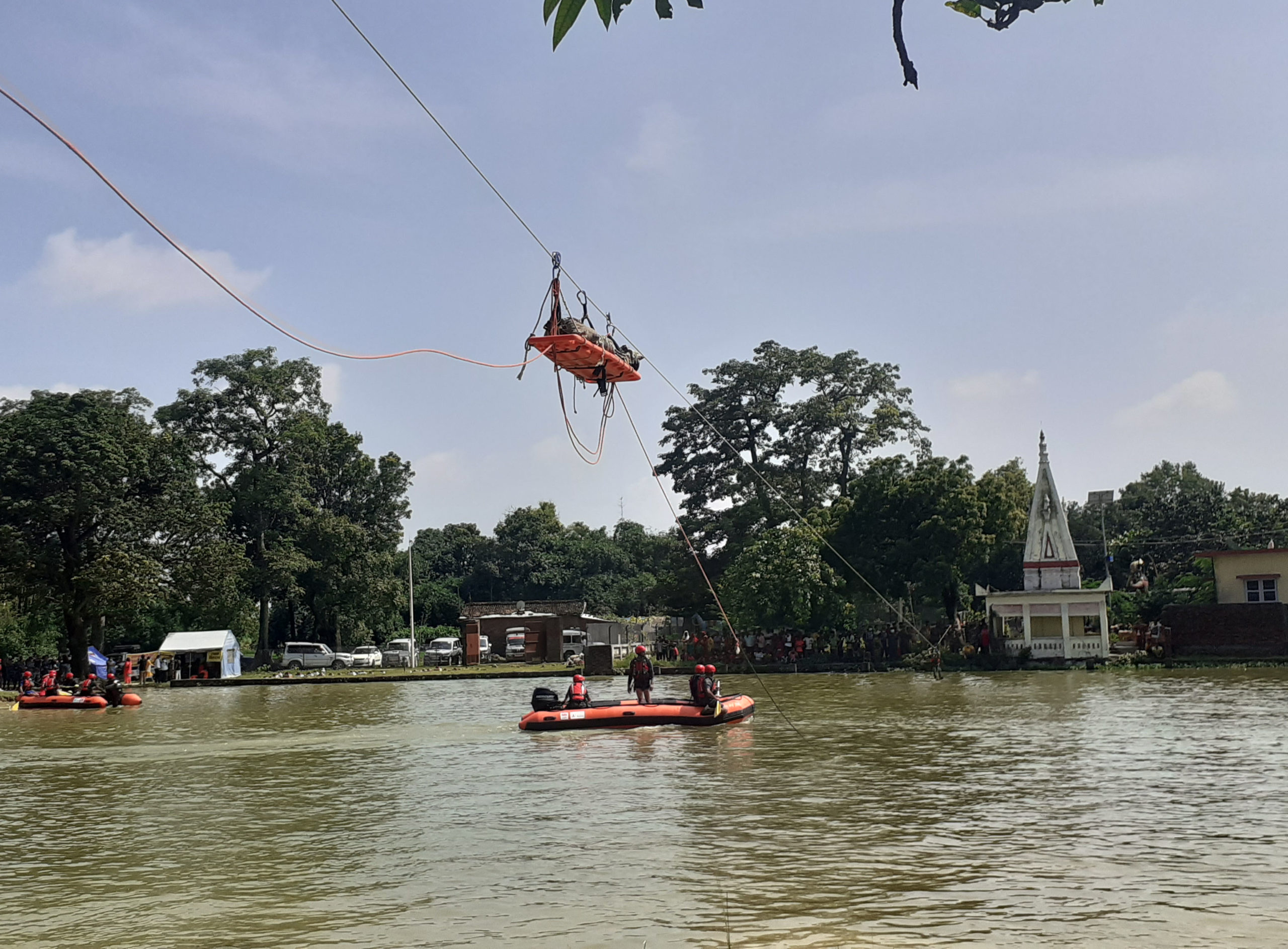 तत्कालै प्रमुख जिल्ला अधिकारीले निर्देशन दिएपश्चात् नेपाली सेना, नेपाल प्रहरी र सशस्त्र प्रहरीको संयुक्त खोज तथा उद्धार टोली मोटरबोटमा आवश्यक उद्धार सामग्रीसहित घटनास्थलमा पुगेर बाढीमा फसेकालाई उद्धार गर्ने, उद्धार गरिएका व्यक्तिलाई सुरक्षितस्थलमा पुर्याउने र घाइतेलाई अस्पताल पुर्याउने कार्यमा खटिएको छ ।