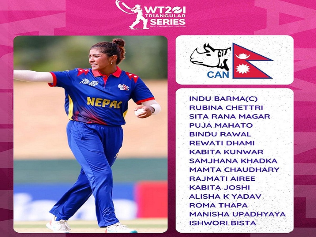 क्यानले इन्दु बर्माको कप्तानीमा १५ सदस्यीय टोली घोषणा गरेको हो । कीर्तिपुरको त्रिवि मैदानमा माघ १७ गते आउने बिहिवारदेखि २५ गतेसम्म नेपाल, नेदरल्याण्ड्स र थाइल्याण्डबीच त्रिदेशीय शृङ्खला हुँदै छ ।
