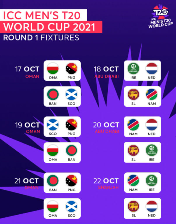 अन्तर्राष्ट्रिय क्रिकेट परिषद् (आईसीसी) ले यूएई र ओमानमा संयुक्त रूपमा हुने विश्वकप क्रिकेटको खेल तालिका मंगलबार सार्वजनिक गरेको हो ।