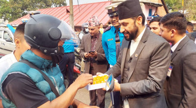 काठमाण्डु – उपप्रधानमन्त्री एवं गृहमन्त्री रवि लामिछानेले काठमाण्डुको थापाथलीमा प्रहरी कर्मचारी र सर्वसाधारणलाई मिठाइ बाँडेका