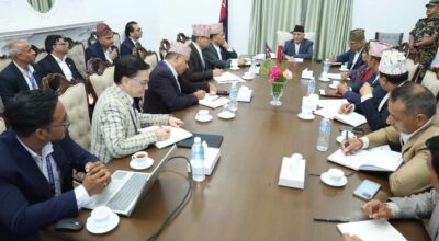 काठमाण्डु – राष्ट्रपति रामचन्द्र पौडेल र प्रधानमन्त्री केपी शर्मा ओलीबीच सोमबार राष्ट्रपति भवन शीतलनिवासमा भेटवार्ता