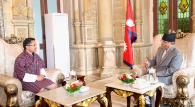 काठमाण्डु – प्रधानमन्त्री पुष्पकमल दाहाल ‘प्रचण्ड’सँग नेपाल भ्रमणमा रहेका भुटानका कृषि तथा पशुपंक्षीमन्त्री ल्योन्पो योन्टेन