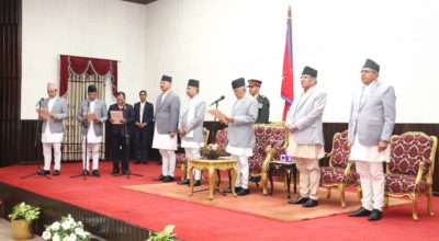 काठमाण्डु – राष्ट्रपति रामचन्द्र पौडेलले नवनियुक्त ३ मन्त्रीलाई पद तथा गोपनीयताको शपथ गराएका छन् ।