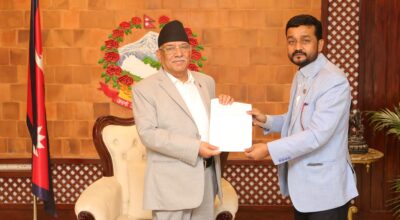 काठमाण्डु – नेकपा एमालेले समर्थन फिर्ता लिएपछि अल्पमतमा परेका प्रधानमन्त्री पुष्पकमल दाहाल ‘प्रचण्ड’ले नेपाली कांग्रेस