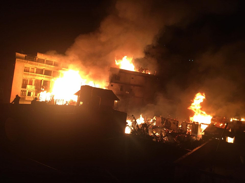 त्यहाँस्थित भण्डारी खाजाघर आसपासबाट एक्कासी आगो सल्किएको स्थानीयवासीले बताएका छन् । यद्यपि कसको घरबाट कसरी आगो सल्किएको हो भन्ने यकिन भएको छैन । नेपाल प्रहरी, सशस्त्र प्रहरी र नेपाली सेनासहित स्थानीयवासीको सक्रियतामा दुई घण्टापछि आगो नियन्त्रणमा लिइएको थियो ।