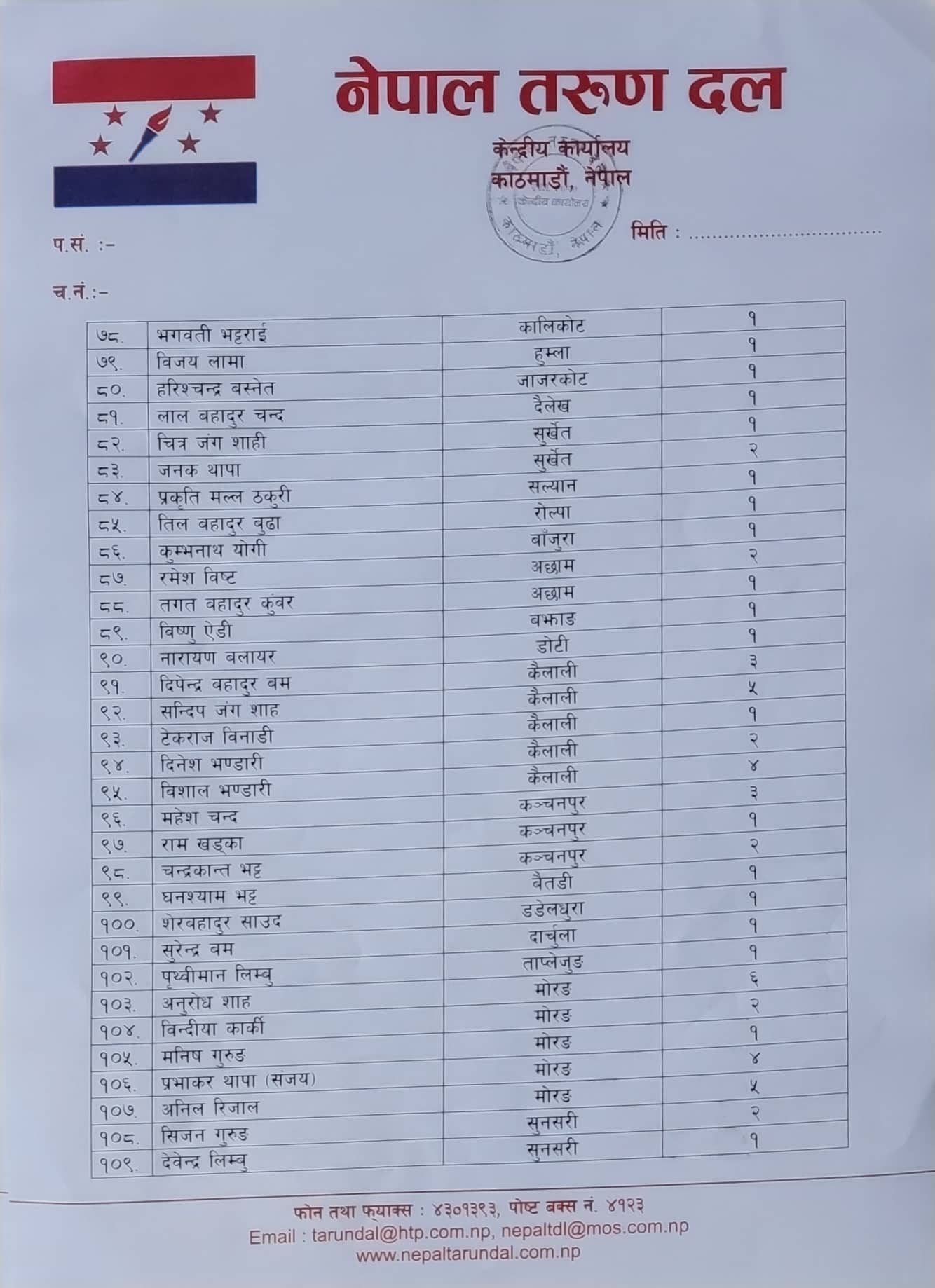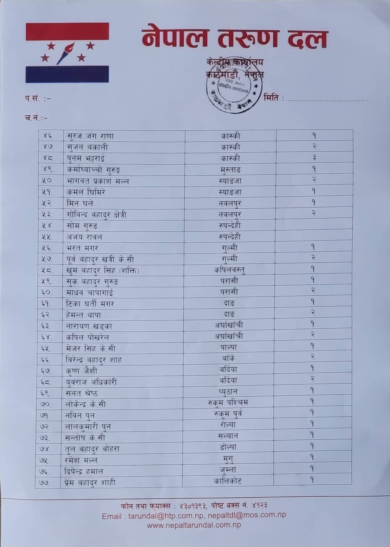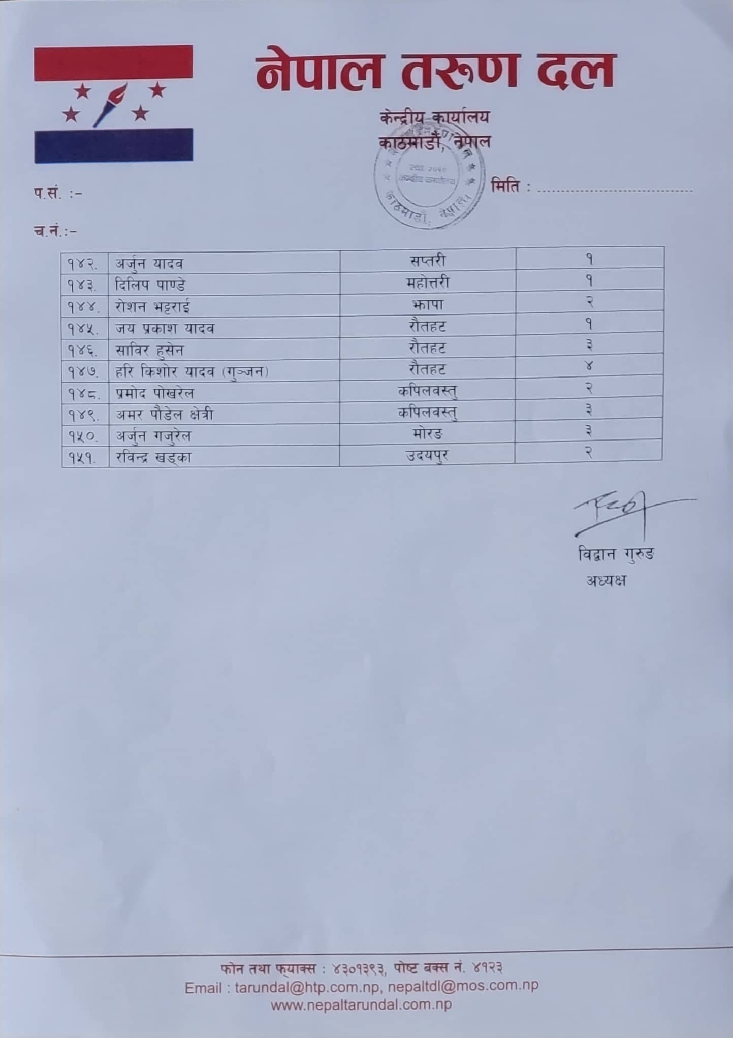 काठमाण्डु – नेपाली कांग्रेसको भ्रातृ संस्था नेपाल तरुण दलले आगामी मङ्सिर ४ गते हुने प्रतिनिधि र प्रदेशसभा सदस्य निर्वाचनको तयारीका लागि सबै निर्वाचन क्षेत्रमा केन्द्रीय प्रतिनिधि खटाएको छ ।