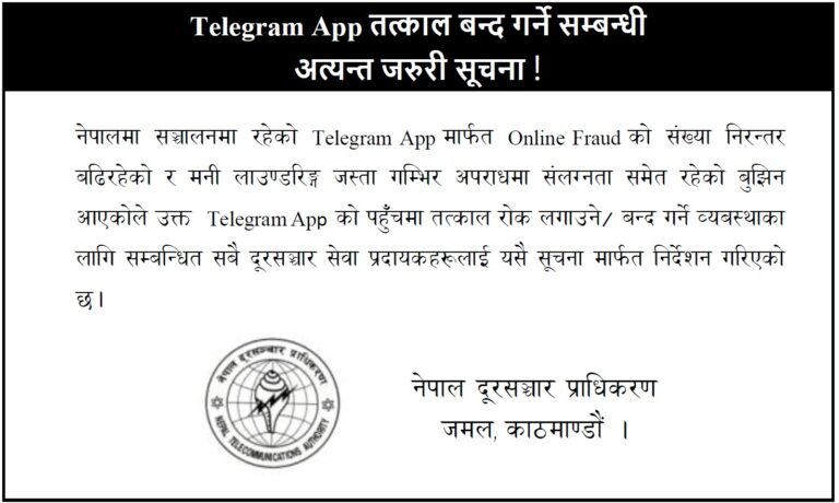 अनलाइन ठगी भएको भन्दै नेपाल दूरसञ्चार प्राधिकरणले नेपालमा टेलिग्राम बन्द गराएको हो ।
