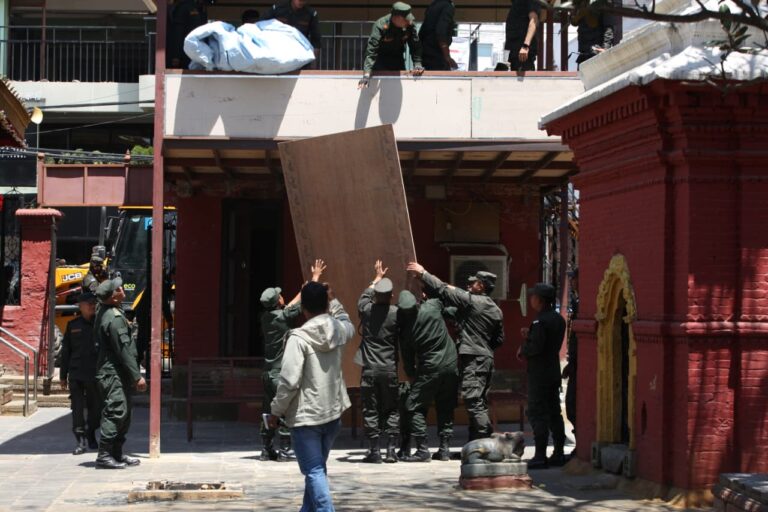 काठमाण्डु – काठमाण्डु महानगरपालिकाले ठमेलको त्रिदेवी मन्दिरमा बनेको अनाधिकृत संरचना भत्काएको छ ।