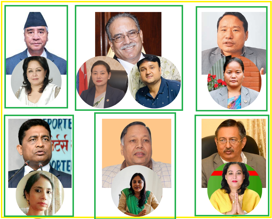 छोरीज्वाइँ जीवन आचार्यलाई प्रचण्डले मोरङ ६ ९क०बाट प्रदेश उम्मेदवार बनाएका छन्। यता वर्षमान–ओनसरी, देवेन्द्र–बलावती, महेश्वर–पार्वती दम्पत्ती चुनावी दौडमा छ । अन्य नेताहरूले आफुले टिकट नपाएपनि आफन्तलाई उम्मेदवारका रूपमा अघि सारेका छन्।