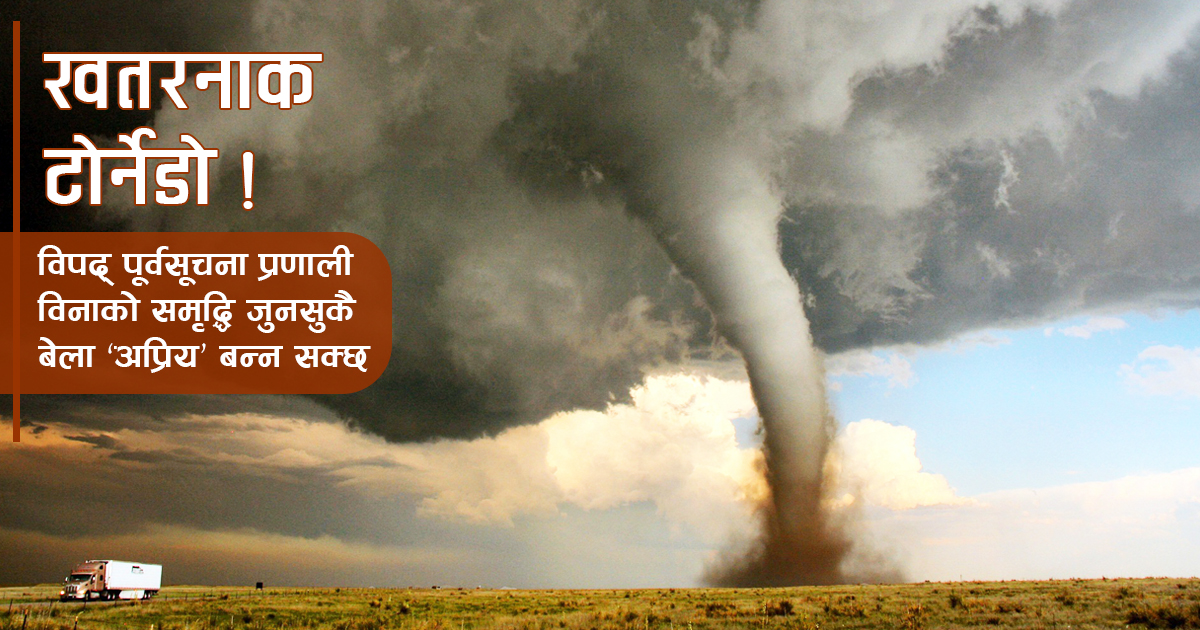 नेपालमा यसअघि ‘टोर्नेडो’ उत्पन्न भएकोको घटना अभिलेखमा नरहेको जनाइएको छ । तर भविष्यमा पनि आउँदैन भनेर भन्न नसकिने भएका कारण पूर्वसूचना प्रणालीलाई मजबुत बनाउनु अत्यावश्यक देखिन्छ । यसतर्फ सरकारले गम्भीरताका साथ सक्रियता देखाउनुपर्छ ।