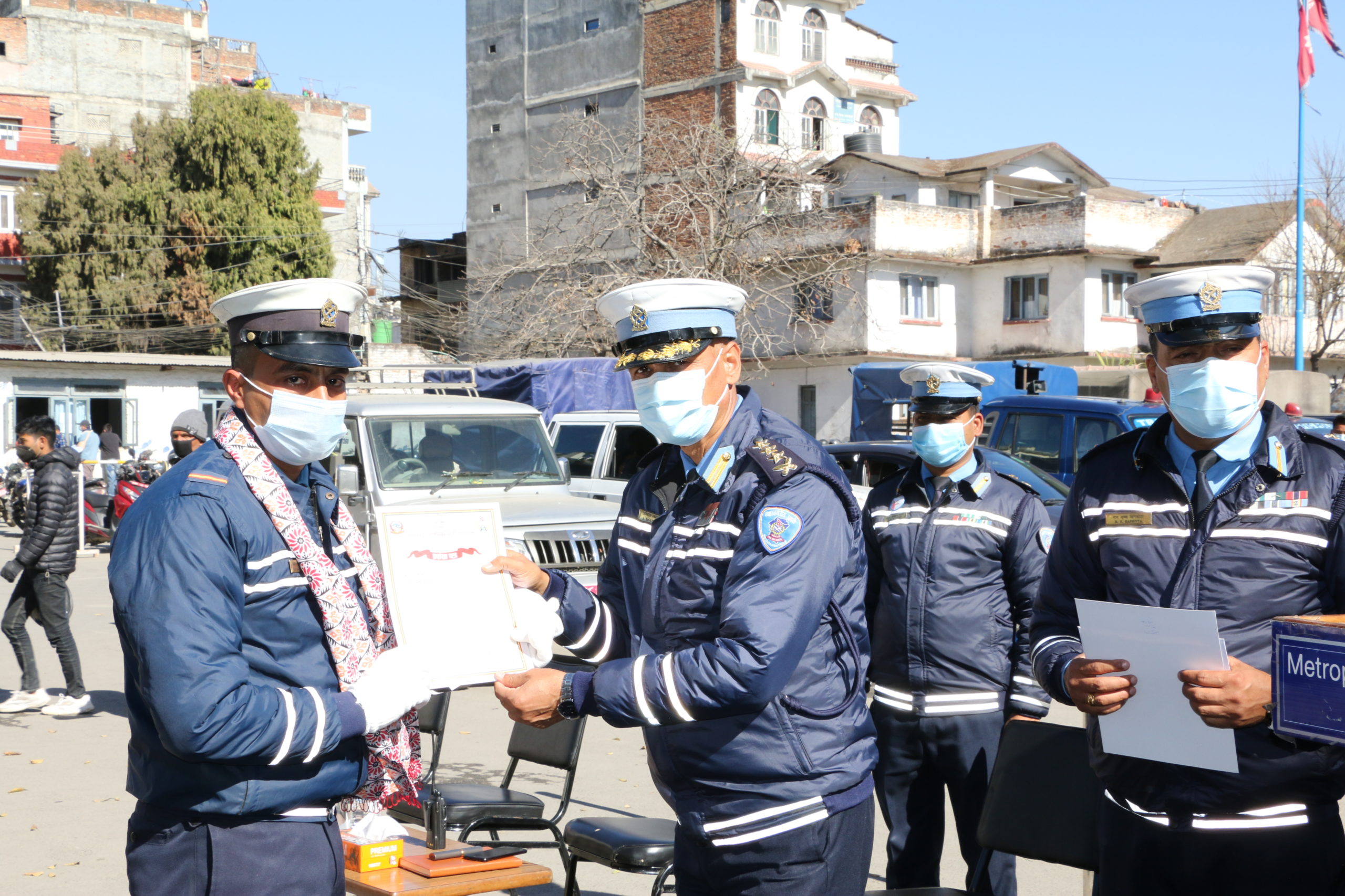 काठमाण्डु – महानगरीय ट्राफिक प्रहरी महाशाखाले घुस नलिने १८ ट्राफिक प्रहरीलाई पुरस्कृत गरेको छ । उनीहरुलाई ट्राफिक महाशाखाका प्रमुख प्रहरी बरिष्ठ उपरीक्षक (एसएसपी) जनक भट्टराईले आइतबार सम्मान गरेका हुन् ।