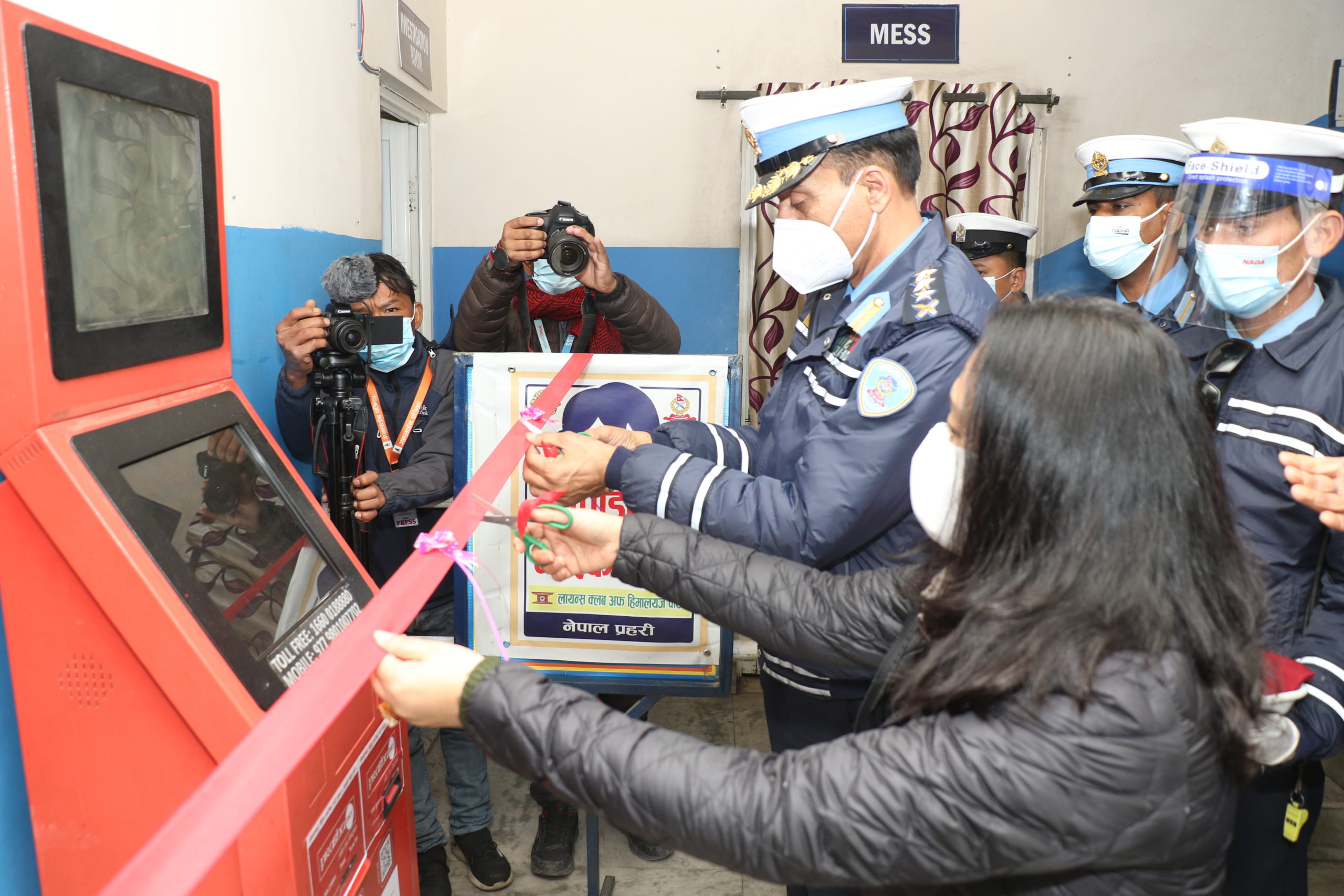 महानगरीय ट्राफिक प्रहरी परिसर सातदोवाटोमा आयोजित एक कार्यक्रमकावीच महानगरीय ट्राफिक प्रहरी महाशाखाका प्रहरी बरिष्ठ उपरीक्षक उमेश राज जोशी र प्रभु-पेका अध्यक्ष कुसुम लामाले संयुक्त रुपमा रिबन काटी “प्रभु-पेको किअस्क मेसिन” उद्घाटन गरेका छन् । सो उद्घाटन पश्चात ७ वटै ट्राफिक कार्यालय सेवा शुभारम्भ भएको छ ।